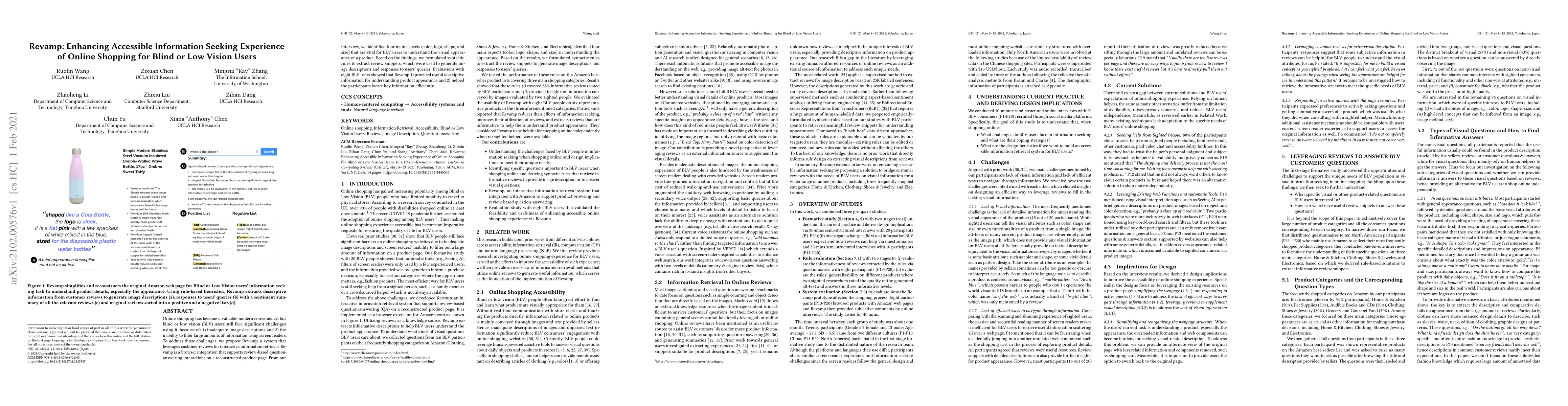 Revamp is a browser integration designed to enhance online shopping for blind or low vision users by leveraging customer reviews for interactive information retrieval. Evaluations with eight BLV users demonstrated that Revamp effectively provides descriptive information and helps locate key details efficiently.