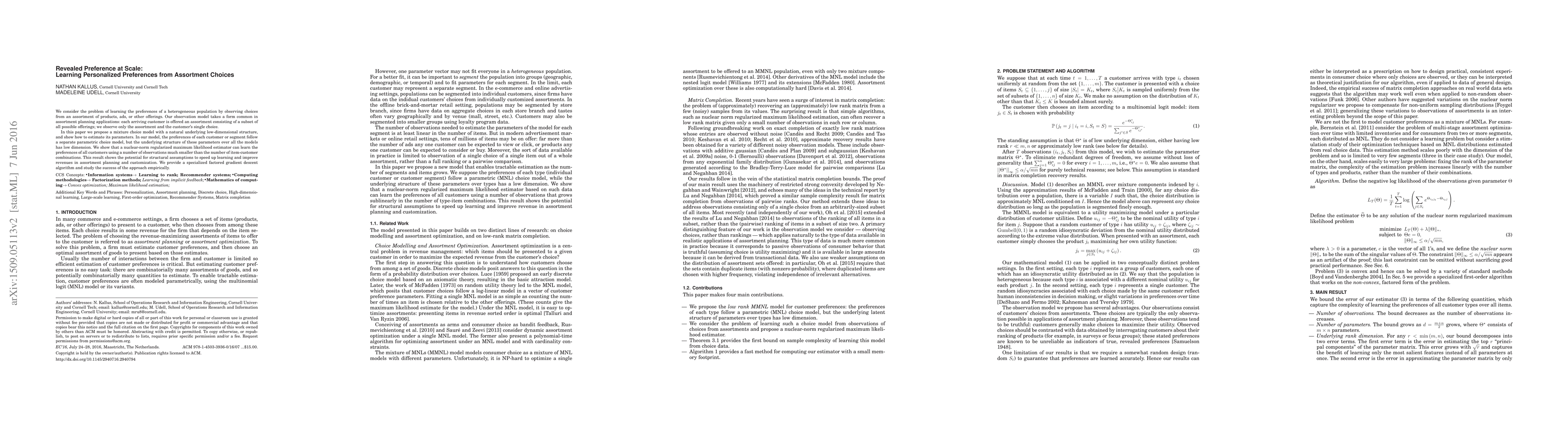 We consider the problem of learning the preferences of a heterogeneous population by observing choices from an assortment of products, ads, or other offerings. Our observation model takes a form common in assortment planning applications: each arriving customer is offered an assortment consisting of a subset of all possible offerings; we observe only the assortment and the customer's single choice. In this paper we propose a mixture choice model with a natural underlying low-dimensional structure, and show how to estimate its parameters. In our model, the preferences of each customer or segment follow a separate parametric choice model, but the underlying structure of these parameters over all the models has low dimension. We show that a nuclear-norm regularized maximum likelihood estimator can learn the preferences of all customers using a number of observations much smaller than the number of item-customer combinations. This result shows the potential for structural assumptions to speed up learning and improve revenues in assortment planning and customization. We provide a specialized factored gradient descent algorithm and study the success of the approach empirically.