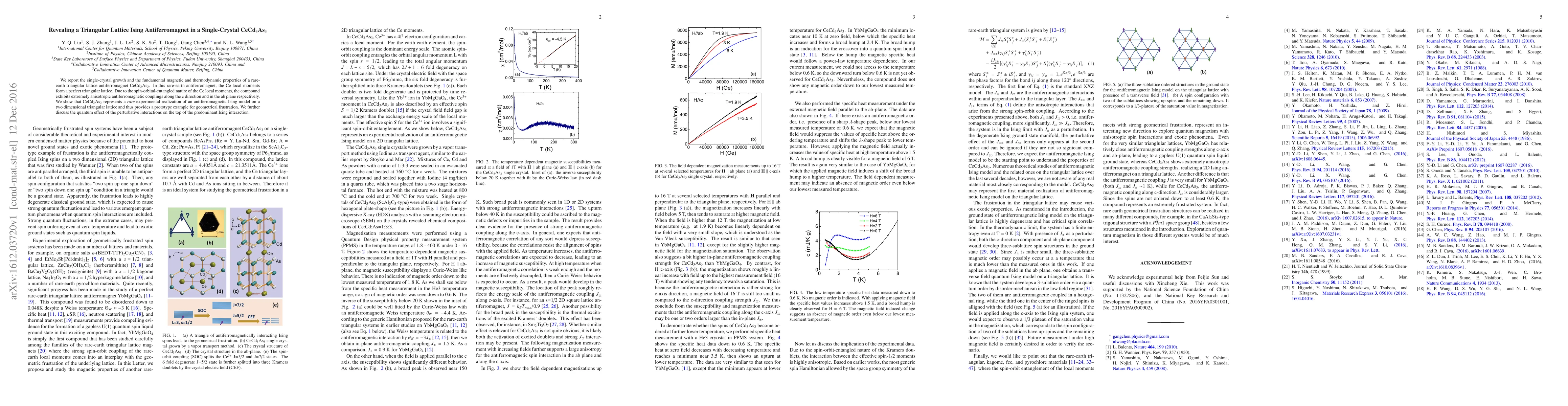 This paper reports the growth of a single-crystal CeCd$_3$As$_3$ and its magnetic properties, revealing a rare-earth triangular lattice Ising antiferromagnet. The compound exhibits anisotropic antiferromagnetic couplings and represents a prototype for geometrical frustration in a two-dimensional triangular lattice.
