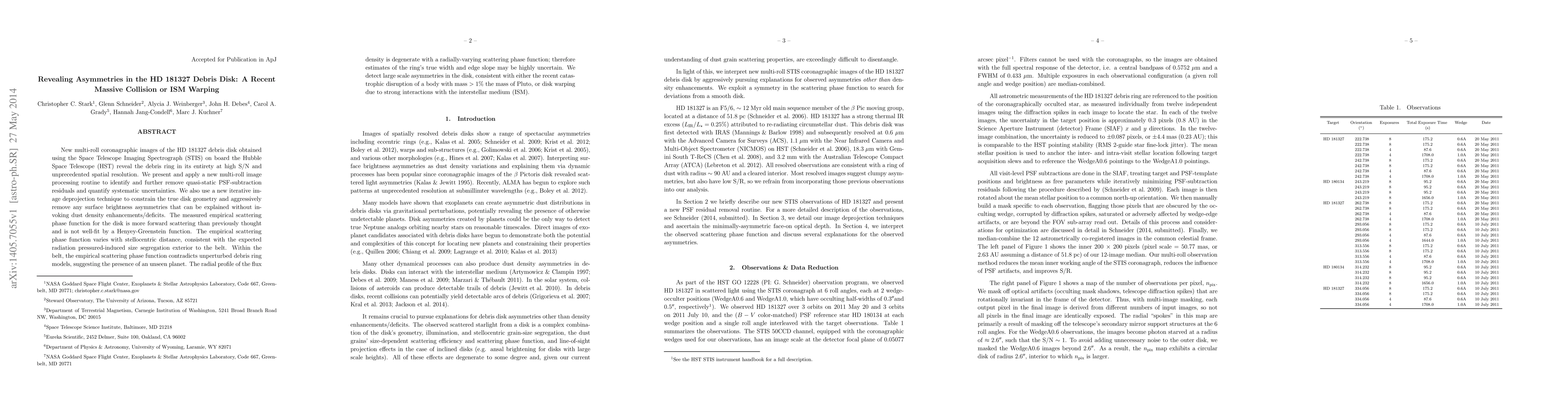 New high-resolution images of the HD 181327 debris disk reveal significant asymmetries, suggesting either a recent massive collision or warping by the interstellar medium. The empirical scattering phase function indicates complex interactions, potentially hinting at an unseen planet.