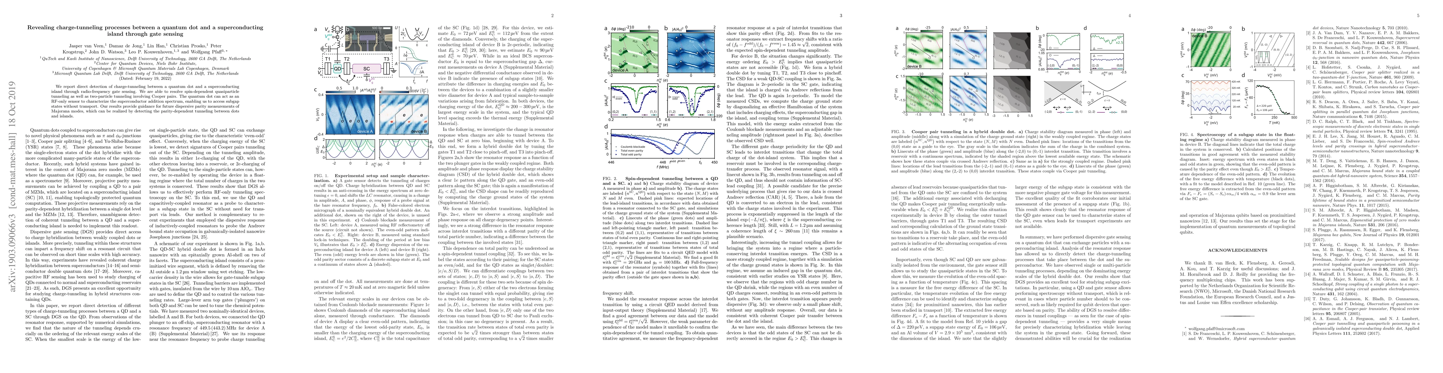 This paper reports direct detection of charge-tunneling processes between a quantum dot and a superconducting island via radio-frequency gate sensing, resolving spin-dependent and Cooper pair tunneling. The quantum dot serves as an RF sensor to characterize the superconductor's addition spectrum, offering insights for future parity measurements of Majorana modes.
