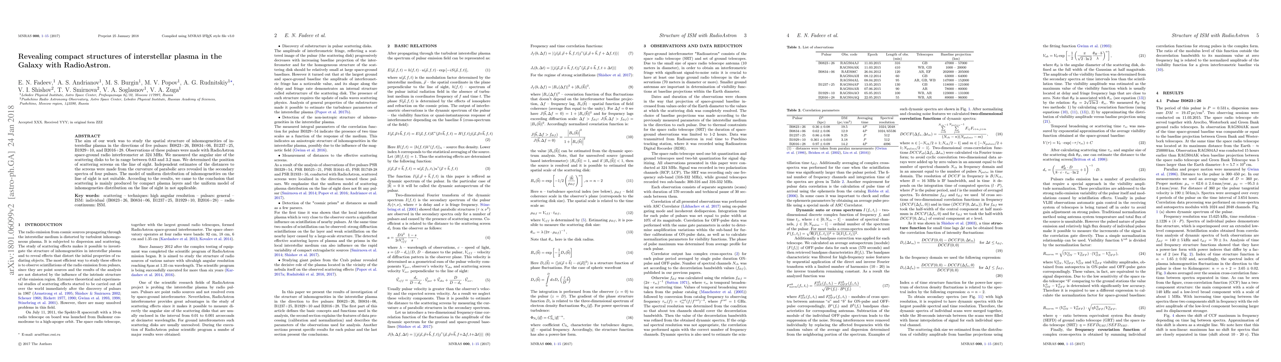 The aim of our work was to study the spatial structure of inhomogeneities of interstellar plasma in the directions of five pulsars: B0823+26, B0834+06, B1237+25, B1929+10, and B2016+28. Observations of these pulsars were made with RadioAstron space-ground radio interferometer at 324 MHz. We measured the angular size of the scattering disks to be in range between 0.63 and 3.2 mas. We determined the position of scattering screens on the line of sight. Independent estimates of the distances to the screens were made from the curvature of parabolic arcs revealed in the secondary spectra of four pulsars. The model of uniform distribution of inhomogeneities on the line of sight is not suitable. According to the results, we came to the conclusion that scattering is mainly produced by compact plasma layers and the uniform model of inhomogeneties distribution on the line of sight in not applicable.