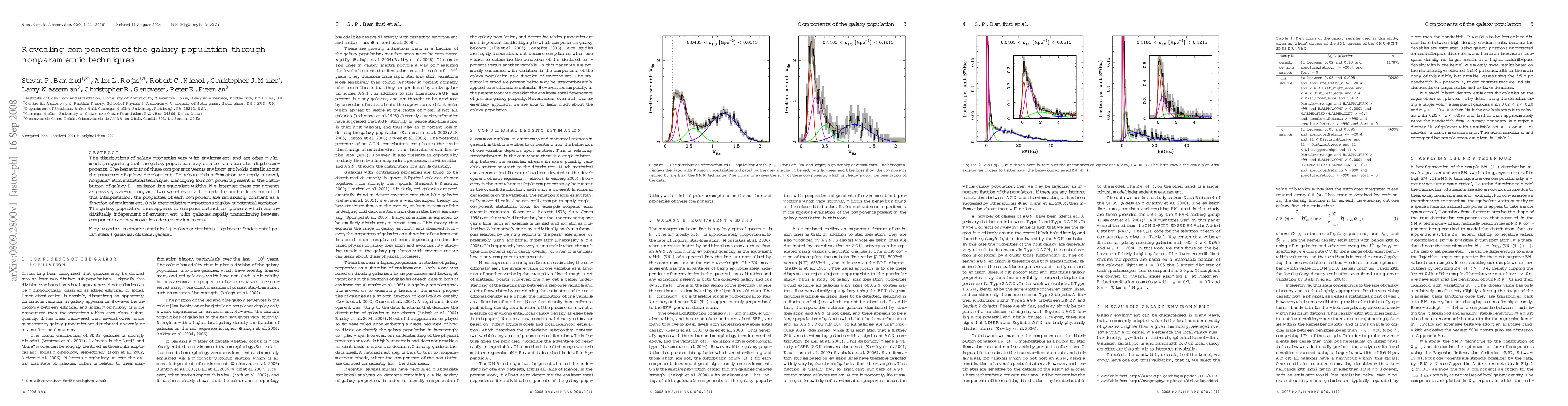 This research identifies four distinct galaxy components using nonparametric techniques, revealing that these components' properties remain constant across environments, with variation only in their relative proportions. This implies galaxies transition rapidly between components when entering denser environments.
