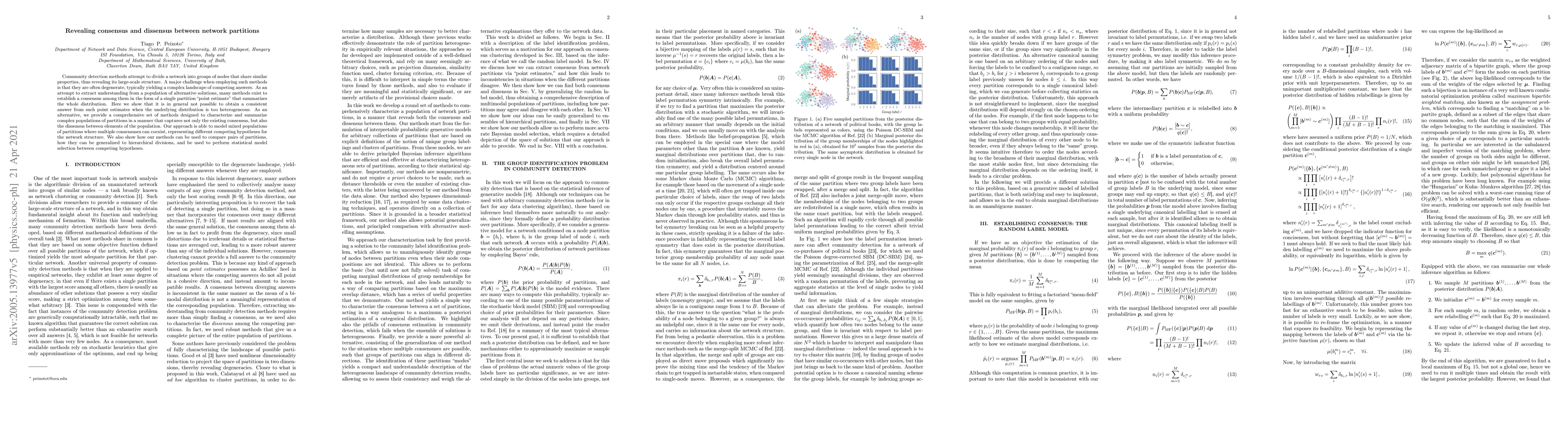 Community detection methods attempt to divide a network into groups of nodes that share similar properties, thus revealing its large-scale structure. A major challenge when employing such methods is that they are often degenerate, typically yielding a complex landscape of competing answers. As an attempt to extract understanding from a population of alternative solutions, many methods exist to establish a consensus among them in the form of a single partition "point estimate" that summarizes the whole distribution. Here we show that it is in general not possible to obtain a consistent answer from such point estimates when the underlying distribution is too heterogeneous. As an alternative, we provide a comprehensive set of methods designed to characterize and summarize complex populations of partitions in a manner that captures not only the existing consensus, but also the dissensus between elements of the population. Our approach is able to model mixed populations of partitions where multiple consensuses can coexist, representing different competing hypotheses for the network structure. We also show how our methods can be used to compare pairs of partitions, how they can be generalized to hierarchical divisions, and be used to perform statistical model selection between competing hypotheses.