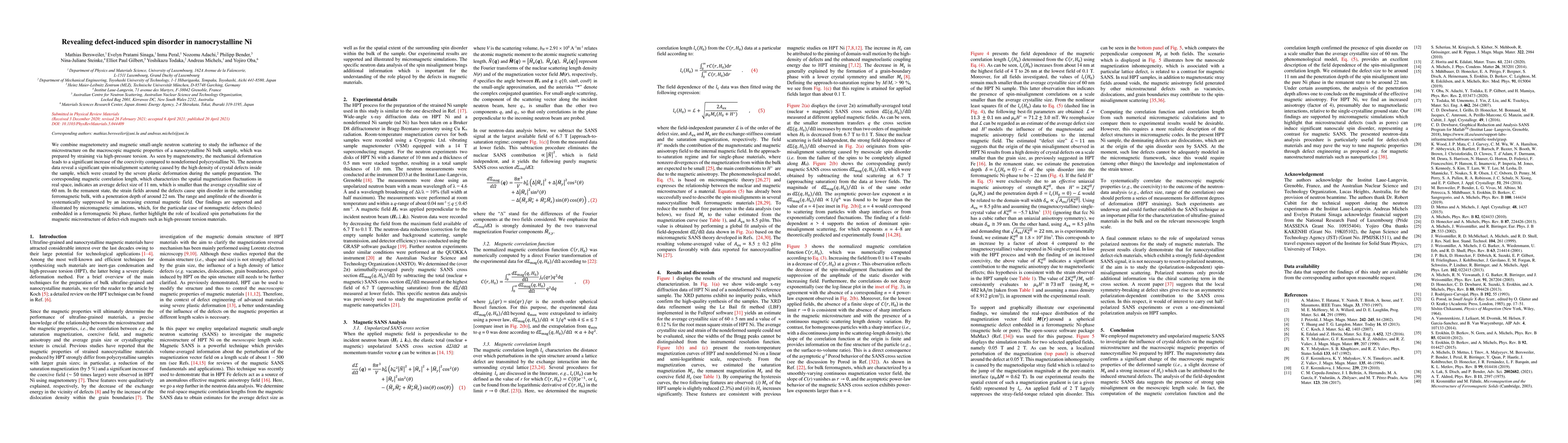 A nanocrystalline Ni sample shows increased coercivity due to defect-induced spin disorder after high-pressure torsion deformation, with defects causing spin misalignment and magnetic fluctuations.