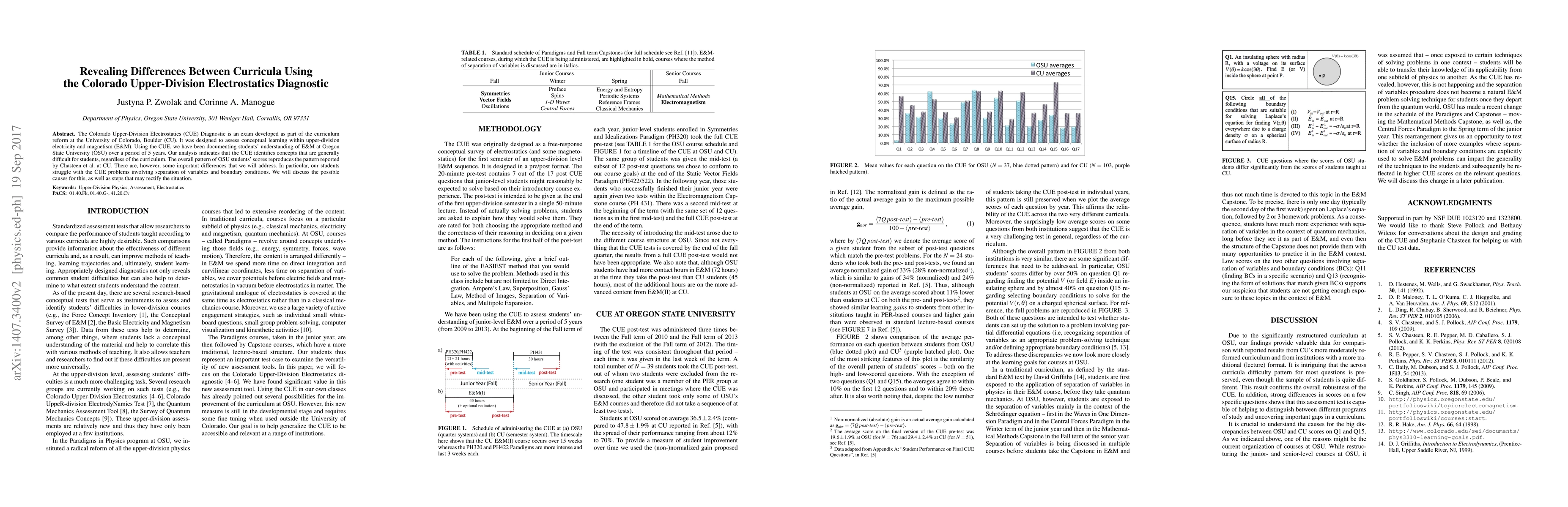 The Colorado Upper-Division Electrostatics (CUE) Diagnostic is an exam developed as part of the curriculum reform at the University of Colorado, Boulder (CU). It was designed to assess conceptual learning within upper-division electricity and magnetism (E&M). Using the CUE, we have been documenting students' understanding of E&M at Oregon State University (OSU) over a period of 5 years. Our analysis indicates that the CUE identifies concepts that are generally difficult for students, regardless of the curriculum. The overall pattern of OSU students' scores reproduces the pattern reported by Chasteen et al. at CU. There are, however, some important differences that we will address. In particular, our students struggle with the CUE problems involving separation of variables and boundary conditions. We will discuss the possible causes for this, as well as steps that may rectify the situation.