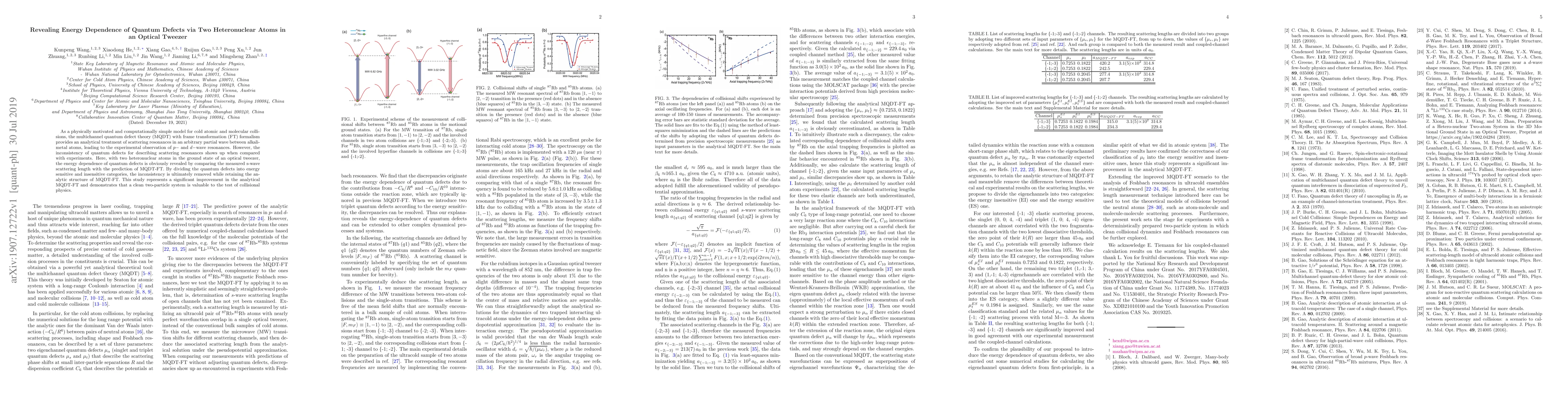 This research reveals energy dependence of quantum defects using two heteronuclear atoms in an optical tweezer, resolving inconsistency with MQDT-FT. It categorizes quantum defects into energy-sensitive and insensitive types, enhancing the analytical MQDT-FT model.