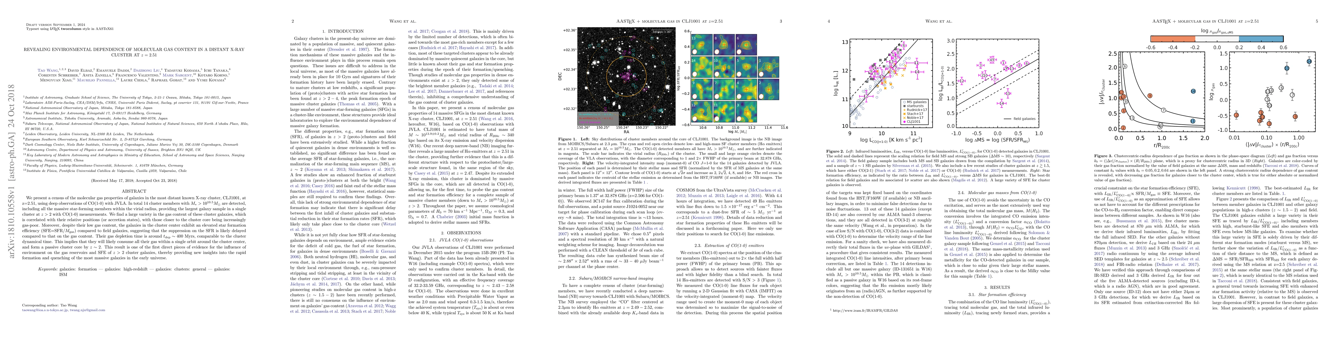 This study reveals significant environmental dependence on the molecular gas content in galaxies within the distant X-ray cluster CLJ1001 at z=2.51, showing that galaxies closer to the cluster core are increasingly gas-poor, despite maintaining high star formation efficiency. The findings suggest these galaxies will likely deplete their gas within a single orbit, leading to a passive cluster core by z~2.