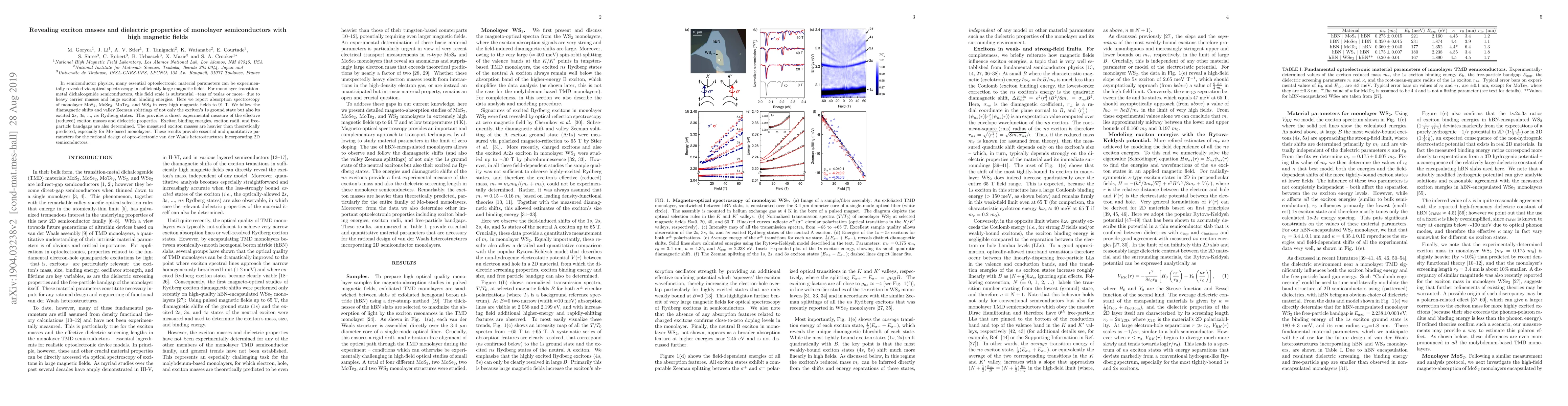 This study uses high magnetic field absorption spectroscopy to measure exciton masses and dielectric properties in monolayer transition-metal dichalcogenides, revealing heavier-than-predicted exciton masses and providing crucial parameters for designing optoelectronic van der Waals heterostructures.
