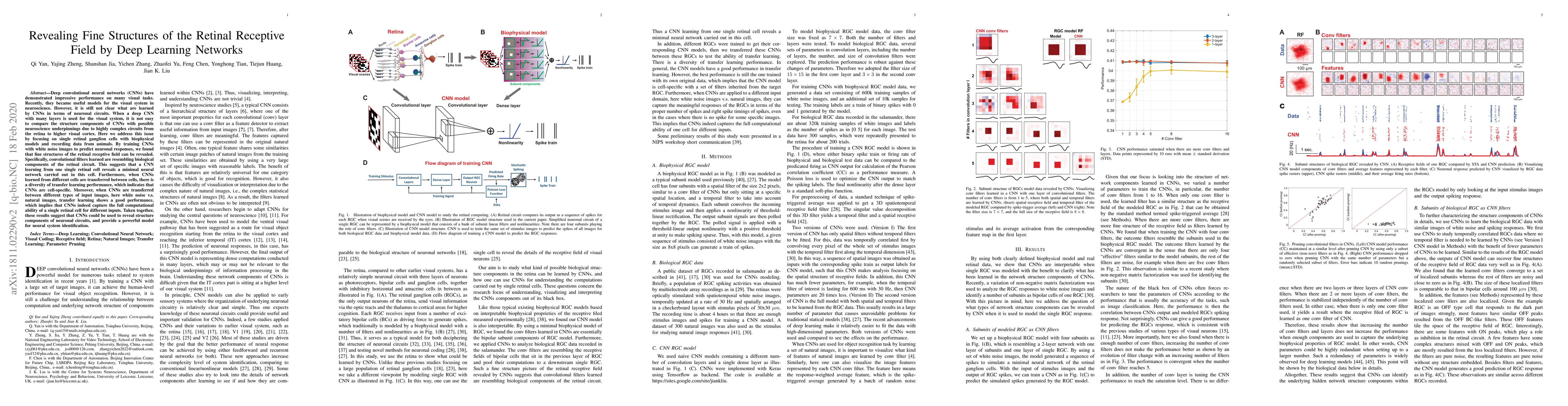 This paper demonstrates that deep convolutional neural networks (CNNs) trained on white noise images to predict responses from single retinal ganglion cells can reveal fine structures of the retinal receptive field. The learned convolutional filters resemble biological components of the retinal circuit, suggesting CNNs can model the minimal neural network of a single retinal cell and capture its computational abilities across different input types.