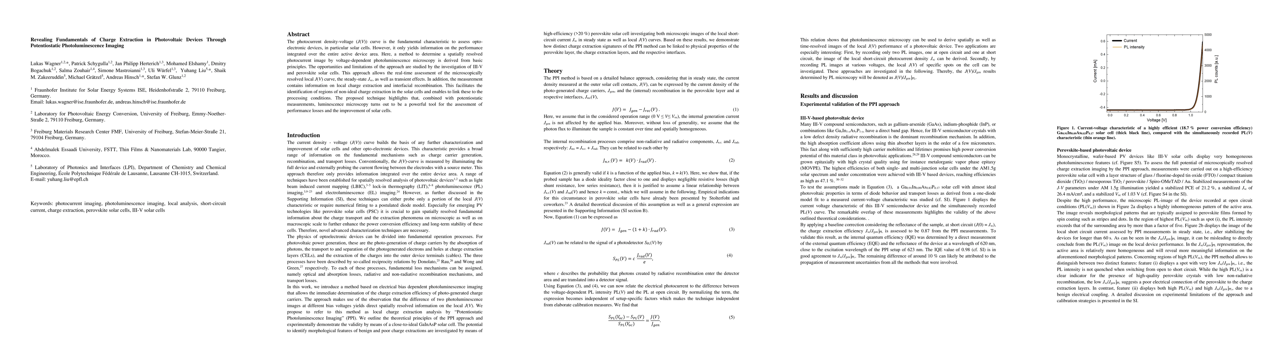 The photocurrent density-voltage (J(V)) curve is the fundamental characteristic to assess opto-electronic devices, in particular solar cells. However, it only yields information on the performance integrated over the entire active device area. Here, a method to determine a spatially resolved photocurrent image by voltage-dependent photoluminescence microscopy is derived from basic principles. The opportunities and limitations of the approach are studied by the investigation of III-V and perovskite solar cells. This approach allows the real-time assessment of the microscopically resolved local J(V) curve, the steady-state Jsc, as well as transient effects. In addition, the measurement contains information on local charge extraction and interfacial recombination. This facilitates the identification of regions of non-ideal charge extraction in the solar cells and enables to link these to the processing conditions. The proposed technique highlights that, combined with potentiostatic measurements, luminescence microscopy turns out to be a powerful tool for the assessment of performance losses and the improvement of solar cells.