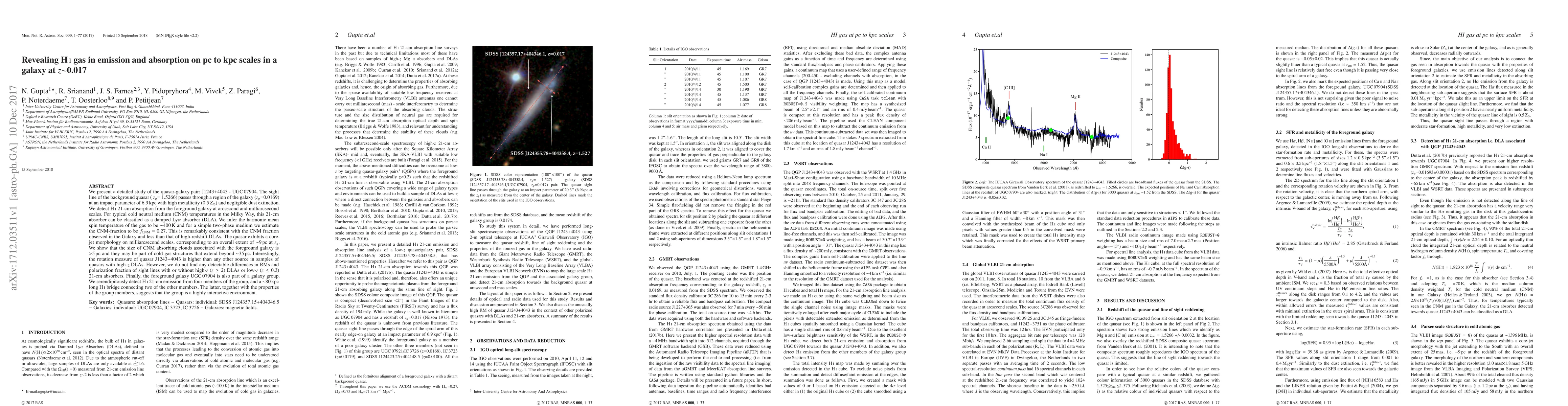 The study employs a detailed analysis of the quasar-galaxy pair J1243+4043 - UGC07904, utilizing high-resolution observations from GMRT, VLBI, and WSRT to investigate HI 21-cm absorption and emission, as well as the properties of the foreground galaxy and its group environment.