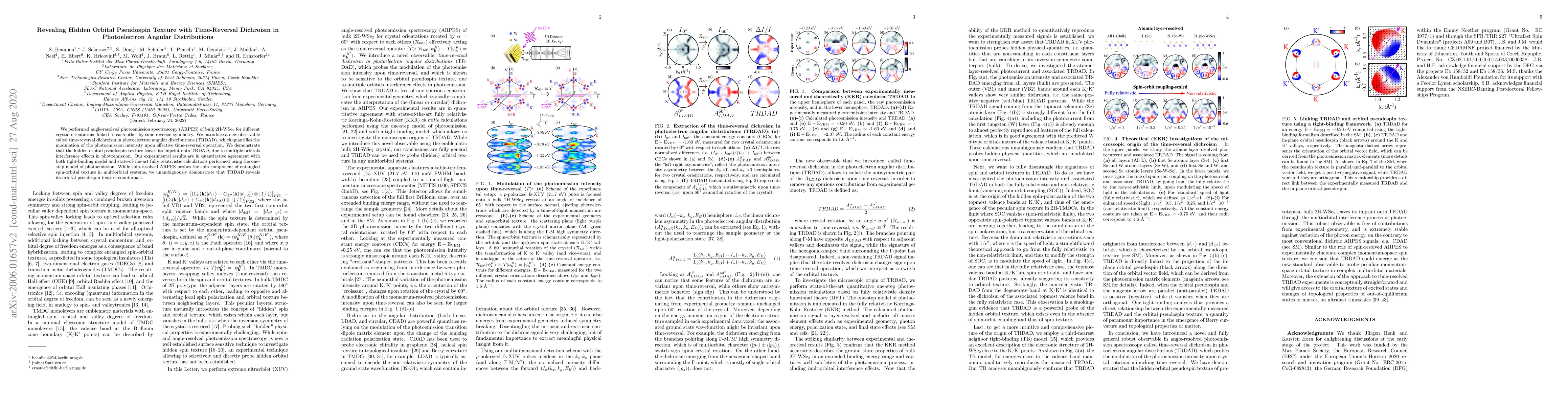 We performed angle-resolved photoemission spectroscopy (ARPES) of bulk 2H-WSe$_2$ for different crystal orientations linked to each other by time-reversal symmetry. We introduce a new observable called time-reversal dichroism in photoelectron angular distributions (TRDAD), which quantifies the modulation of the photoemission intensity upon effective time-reversal operation. We demonstrate that the hidden orbital pseudospin texture leaves its imprint onto TRDAD, due to multiple orbitals interference effects in photoemission. Our experimental results are in quantitative agreement with both tight-binding model and state-of-the-art fully relativistic calculations performed using the one-step model of photoemission. While spin-resolved ARPES probes the spin component of entangled spin-orbital texture in multiorbital systems, we unambiguously demonstrate that TRDAD reveals its orbital pseudospin texture counterpart.