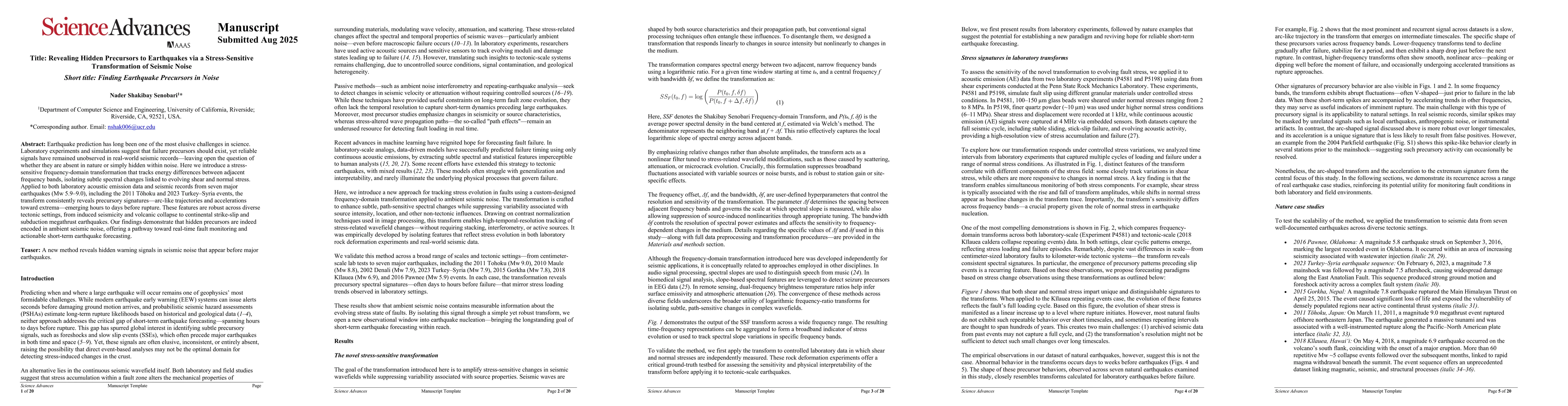 Earthquake prediction has long been one of the most elusive challenges in science. Laboratory experiments and simulations suggest that failure precursors should exist, yet reliable signals have remained unobserved in real-world seismic records, leaving open the question of whether they are absent in nature or simply hidden within noise. Here we introduce a stress-sensitive frequency-domain transformation that tracks energy differences between adjacent frequency bands, isolating subtle spectral changes linked to evolving shear and normal stress. Applied to both laboratory acoustic emission data and seismic records from seven major earthquakes (Mw 5.9-9.0), including the 2011 Tohoku and 2023 Turkey-Syria events, the transform consistently reveals precursory signatures, arc-like trajectories and accelerations toward extrema, emerging hours to days before rupture. These features are robust across diverse tectonic settings, from induced seismicity and volcanic collapse to continental strike-slip and subduction megathrust earthquakes. Our findings demonstrate that hidden precursors are indeed encoded in ambient seismic noise, offering a pathway toward real-time fault monitoring and actionable short-term earthquake forecasting.