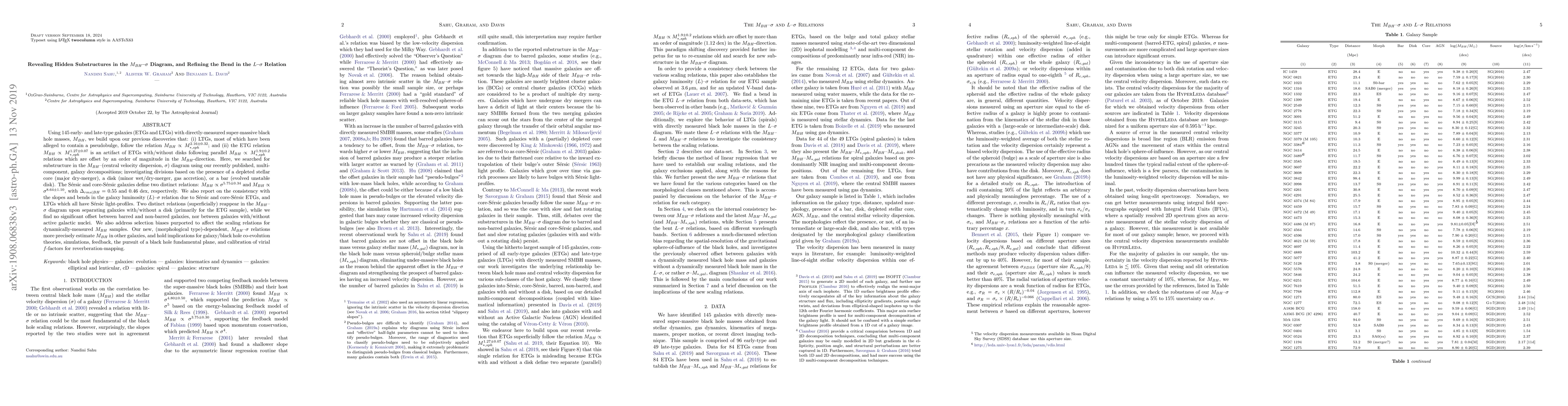 Using 145 early- and late-type galaxies (ETGs and LTGs) with directly-measured super-massive black hole masses, $M_{BH}$, we build upon our previous discoveries that: (i) LTGs, most of which have been alleged to contain a pseudobulge, follow the relation $M_{BH}\propto\,M_{*,sph}^{2.16\pm0.32}$; and (ii) the ETG relation $M_{BH}\propto\,M_{*,sph}^{1.27\pm0.07}$ is an artifact of ETGs with/without disks following parallel $M_{BH}\propto\,M_{*,sph}^{1.9\pm0.2}$ relations which are offset by an order of magnitude in the $M_{BH}$-direction. Here, we searched for substructure in the $M_{BH}$--(central velocity dispersion, $\sigma$) diagram using our recently published, multi-component, galaxy decompositions; investigating divisions based on the presence of a depleted stellar core (major dry-merger), a disk (minor wet/dry-merger, gas accretion), or a bar (evolved unstable disk). The S\'ersic and core-S\'ersic galaxies define two distinct relations: $M_{BH}\propto\sigma^{5.75\pm0.34}$ and $M_{BH}\propto\sigma^{8.64\pm1.10}$, with $\Delta_{rms|BH}=0.55$ and $0.46$~dex, respectively. We also report on the consistency with the slopes and bends in the galaxy luminosity ($L$)--$\sigma$ relation due to S\'ersic and core-S\'ersic ETGs, and LTGs which all have S\'ersic light-profiles. Two distinct relations (superficially) reappear in the $M_{BH}$--$\sigma$ diagram upon separating galaxies with/without a disk (primarily for the ETG sample), while we find no significant offset between barred and non-barred galaxies, nor between galaxies with/without active galactic nuclei. We also address selection biases purported to affect the scaling relations for dynamically-measured $M_{BH}$ samples. Our new, (morphological type)-dependent, $M_{BH}$--$\sigma$ relations more precisely estimate $M_{BH}$ in other galaxies, and hold implications for galaxy/black hole co-evolution theories, and simulations. (Abridged)