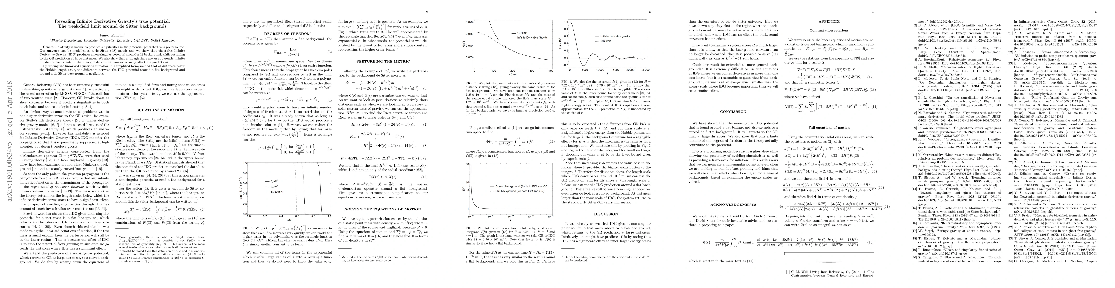 General Relativity is known to produce singularities in the potential generated by a point source. Our universe can be modelled as a de Sitter (dS) metric and we show that ghost-free Infinite Derivative Gravity (IDG) produces a non-singular potential around a dS background, while returning to the GR prediction at large distances. We also show that although there are an apparently infinite number of coefficients in the theory, only a finite number actually affect the predictions. By writing the linearised equations of motion in a simplified form, we find that at distances below the Hubble length scale, the difference between the IDG potential around a flat background and around a de Sitter background is negligible.