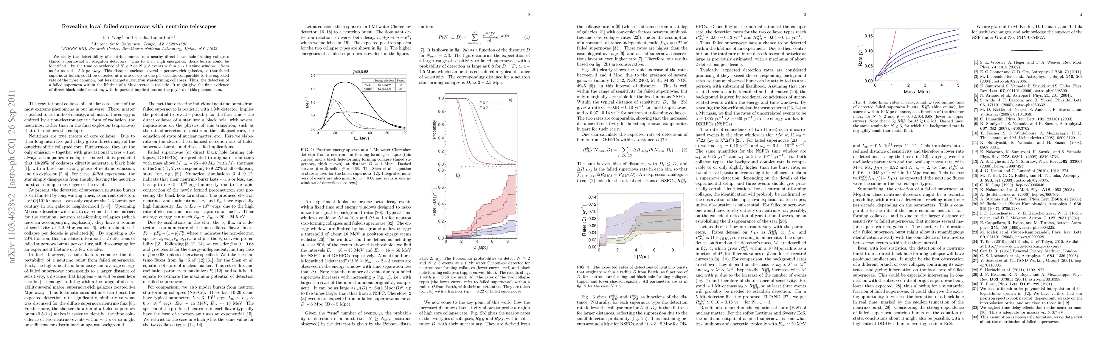 Researchers explore the potential to detect neutrino bursts from nearby failed supernovae using megaton detectors, which could provide evidence of direct black hole formation. They estimate that such events could be detected up to 4-5 million light-years away, offering a new way to study this phenomenon.