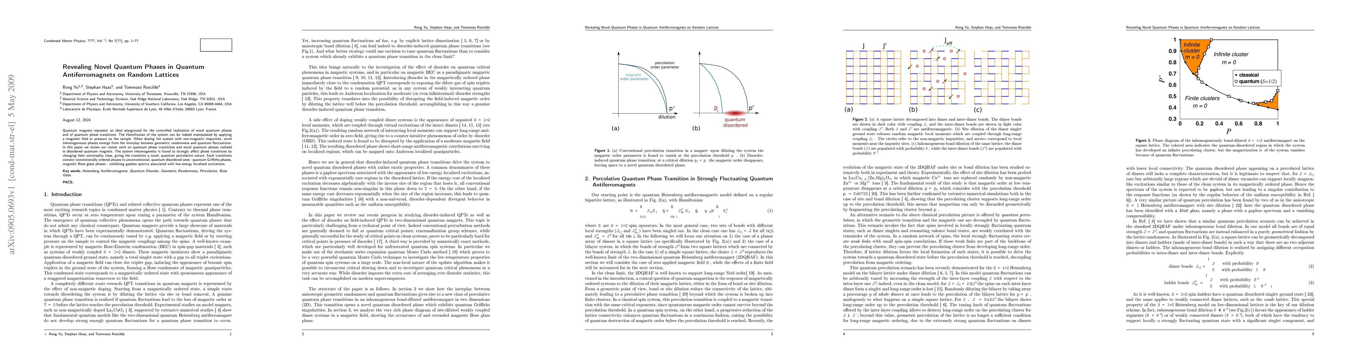 Quantum magnets represent an ideal playground for the controlled realization of novel quantum phases and of quantum phase transitions. The Hamiltonian of the system can be indeed manipulated by applying a magnetic field or pressure on the sample. When doping the system with non-magnetic impurities, novel inhomogeneous phases emerge from the interplay between geometric randomness and quantum fluctuations. In this paper we review our recent work on quantum phase transitions and novel quantum phases realized in disordered quantum magnets. The system inhomogeneity is found to strongly affect phase transitions by changing their universality class, giving the transition a novel, quantum percolative nature. Such transitions connect conventionally ordered phases to unconventional, quantum disordered ones - quantum Griffiths phases, magnetic Bose glass phases - exhibiting gapless spectra associated with low-energy localized excitations.
