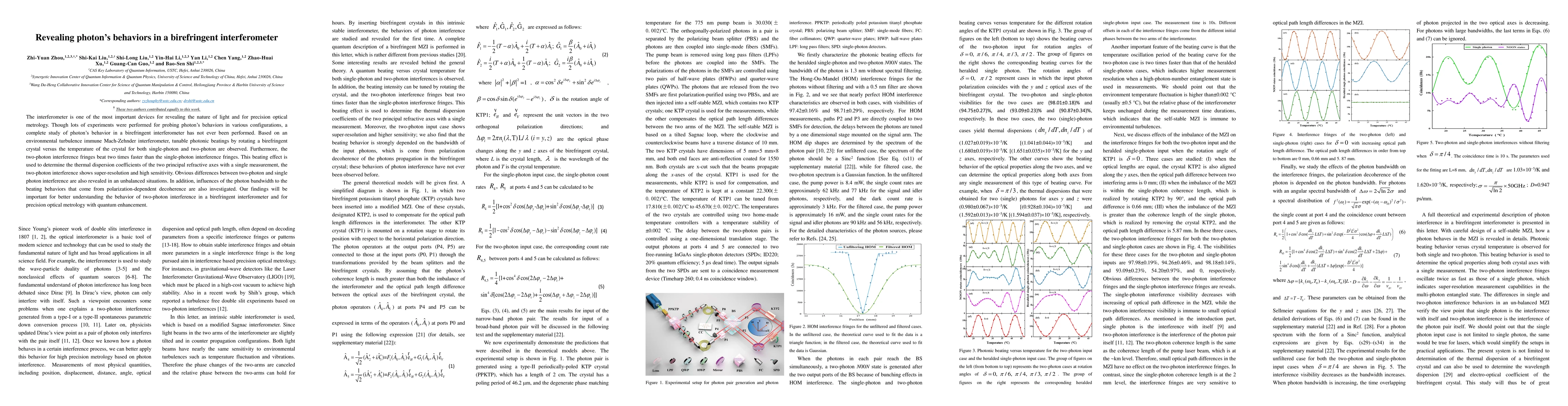 The interferometer is one of the most important devices for revealing the nature of light and for precision optical metrology. Though lots of experiments were performed for probing photons behaviors in various configurations, a complete study of photons behavior in a birefringent interferometer has not ever been performed. Based on an environmental turbulence immune Mach-Zehnder interferometer, tunable photonic beatings by rotating a birefringent crystal versus the temperature of the crystal for both single-photon and two-photon are observed. Furthermore, the two-photon interference fringes beat two times faster than the single-photon interference fringes. This beating effect is used to determine the thermal dispersion coefficients of the two principal refractive axes with a single measurement, the two-photon interference shows super-resolution and high sensitivity. Obvious differences between two-photon and single photon interference are also revealed in an unbalanced situations. In addition, influences of the photon bandwidth to the beating behaviors that come from polarization-dependent decoherence are also investigated. Our findings will be important for better understanding the behavior of two-photon interference in a birefringent interferometer and for precision optical metrology with quantum enhancement.