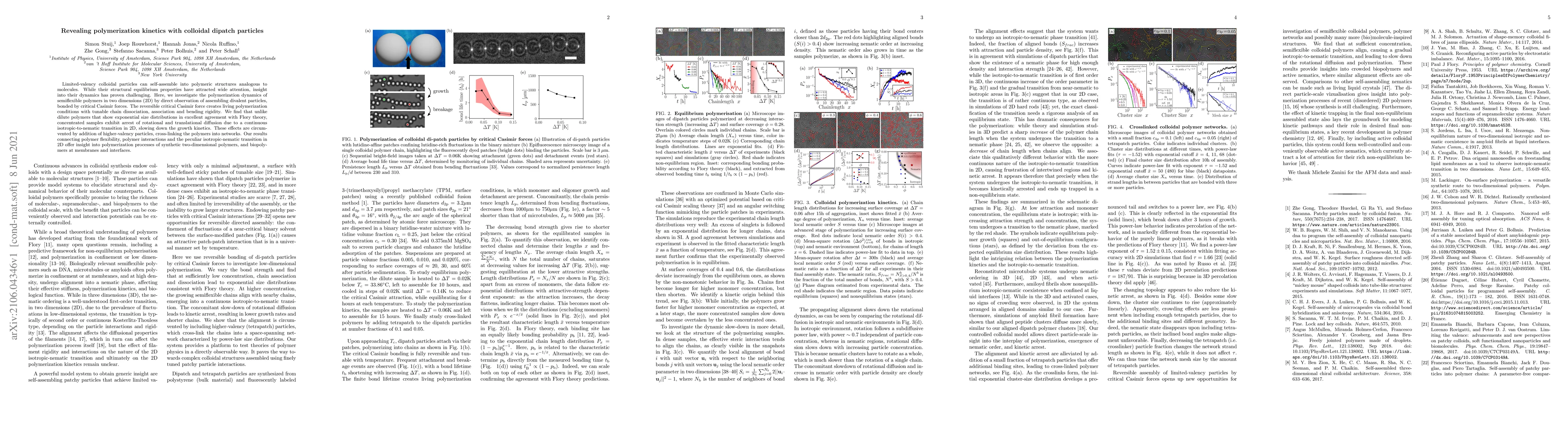 This paper investigates the polymerization dynamics of semiflexible polymers in 2D using colloidal particles, revealing that concentrated samples exhibit slowed growth kinetics due to an isotropic-to-nematic transition, contrasting with dilute polymers. Adding higher-valency particles cross-links the polymers into networks, circumventing these effects.