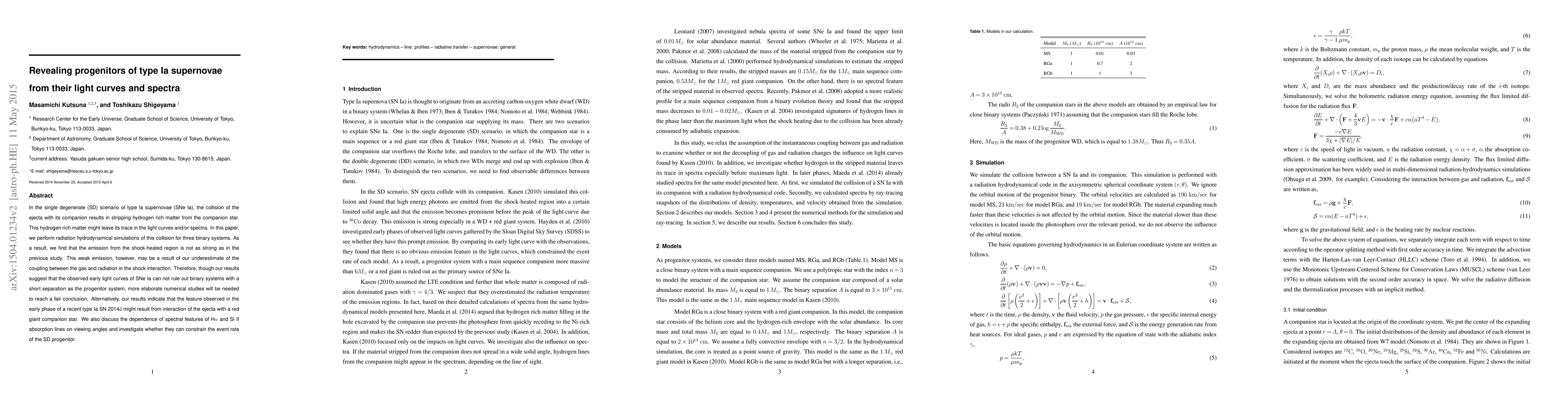 This paper investigates the progenitors of type Ia supernovae (SNe Ia) in the single degenerate scenario through radiation hydrodynamical simulations of binary systems. The study finds that the emission from the shock-heated region is weaker than previously thought, suggesting that binary systems with short separations may still be viable progenitors, though more detailed numerical studies are needed.