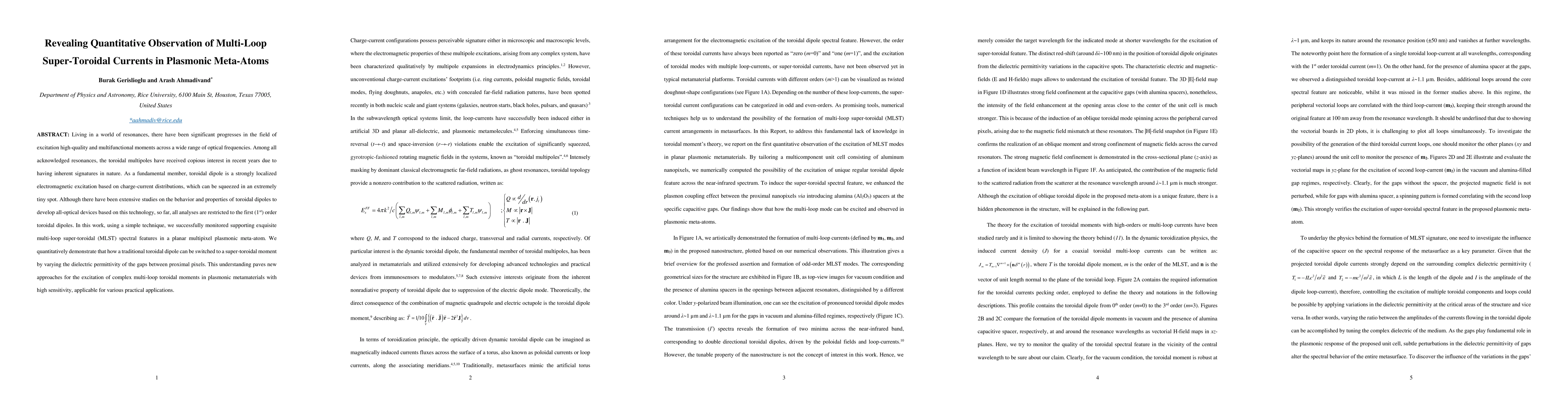 This paper quantitatively observes multi-loop super-toroidal currents in plasmonic meta-atoms using a simple monitoring technique, demonstrating the transition from toroidal dipoles to super-toroidal moments by adjusting dielectric permittivity. This discovery opens new avenues for high-sensitivity excitation of complex toroidal moments in plasmonic metamaterials.