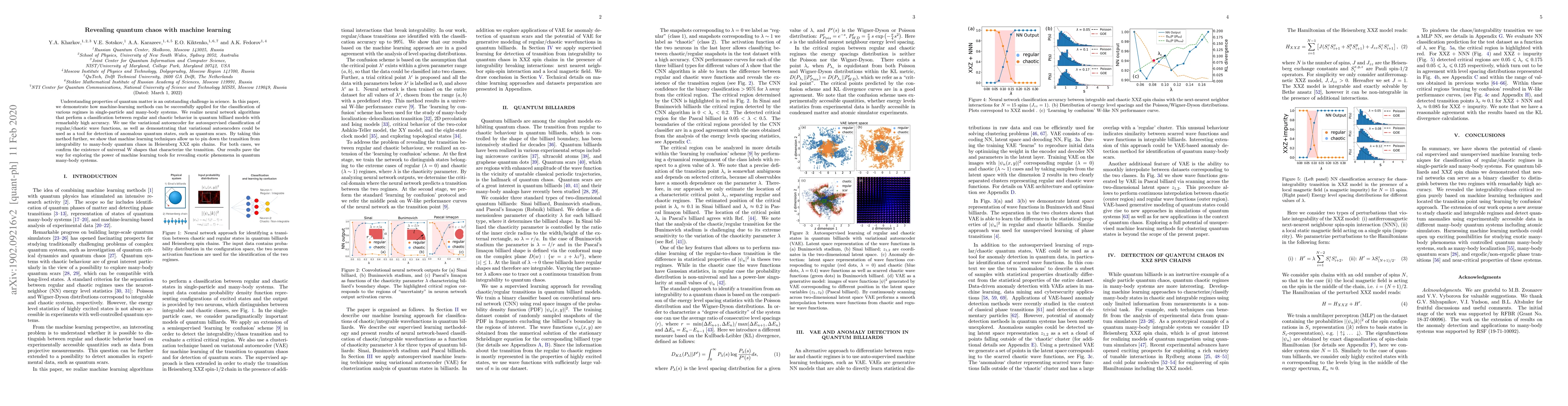 Understanding properties of quantum matter is an outstanding challenge in science. In this paper, we demonstrate how machine-learning methods can be successfully applied for the classification of various regimes in single-particle and many-body systems. We realize neural network algorithms that perform a classification between regular and chaotic behavior in quantum billiard models with remarkably high accuracy. We use the variational autoencoder for autosupervised classification of regular/chaotic wave functions, as well as demonstrating that variational autoencoders could be used as a tool for detection of anomalous quantum states, such as quantum scars. By taking this method further, we show that machine learning techniques allow us to pin down the transition from integrability to many-body quantum chaos in Heisenberg XXZ spin chains. For both cases, we confirm the existence of universal W shapes that characterize the transition. Our results pave the way for exploring the power of machine learning tools for revealing exotic phenomena in quantum many-body systems.