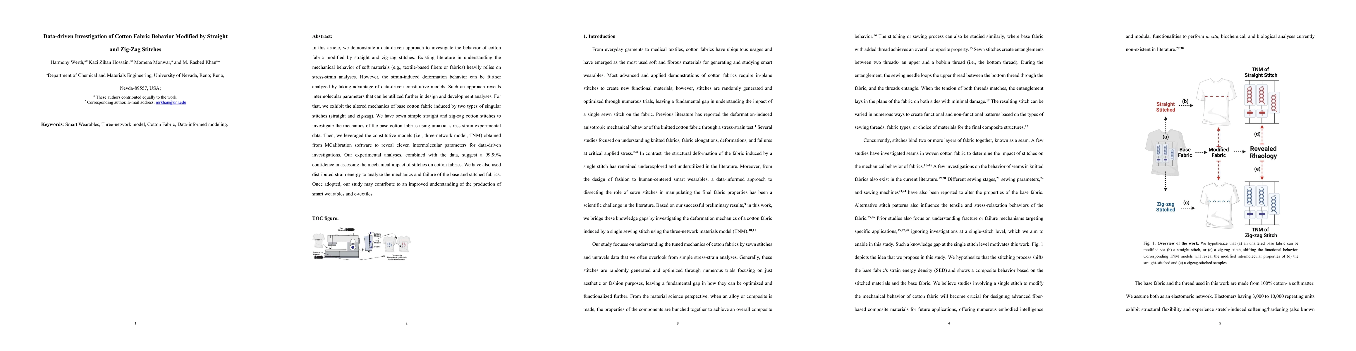 This paper investigates the rheological changes in cotton fabrics due to stitching using a three-network modeling approach. Experimental data and modeling reveal a 99.99% confidence in assessing the impact of straight and zigzag stitches on fabric mechanical properties, potentially aiding the development of smart textiles.
