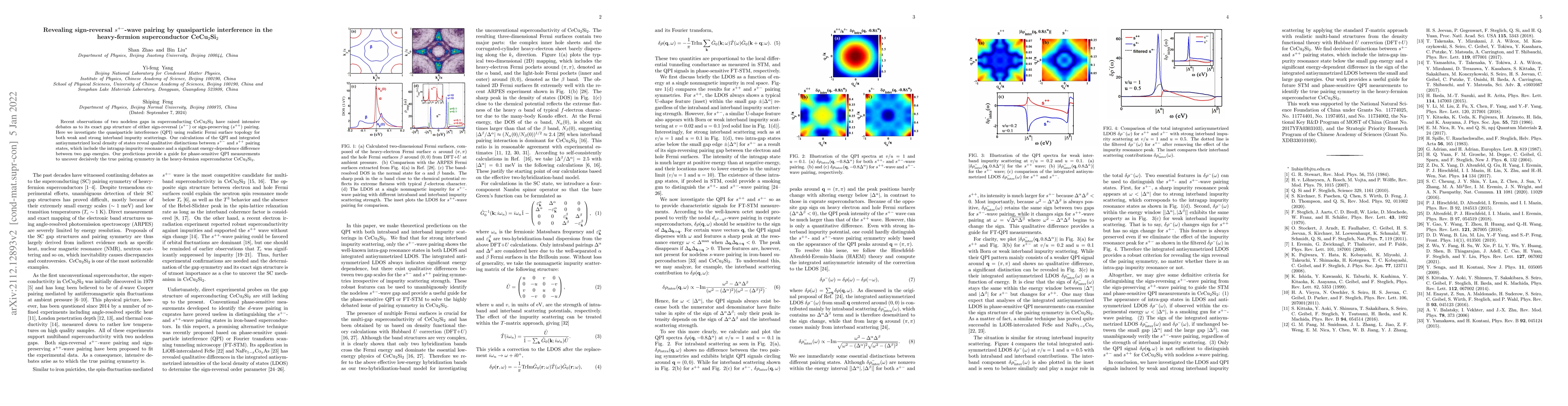 This paper investigates the superconducting pairing symmetry in CeCu$_2$Si$_2$ using quasiparticle interference (QPI) and reveals distinctive features between sign-reversal $s^{+-}$ and sign-preserving $s^{++}$ pairing states. The study predicts significant differences in the intragap impurity resonance and energy dependence, providing a guide for future QPI experiments to determine the true pairing symmetry.
