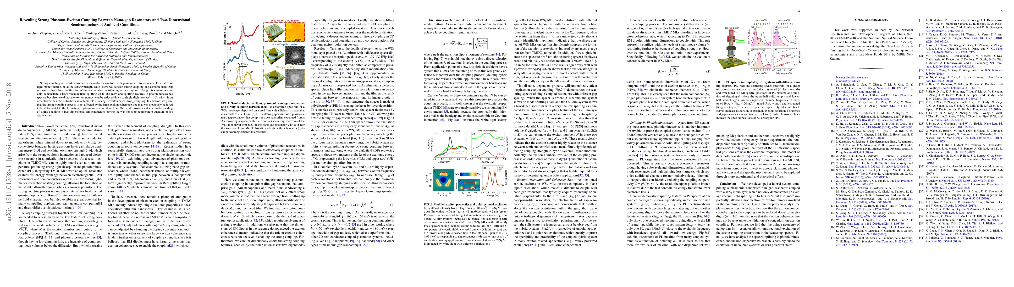 This paper demonstrates strong plasmon-exciton coupling in nano-gap resonators with two-dimensional semiconductors, achieving a large vacuum Rabi splitting and reducing exciton number to single-digit levels, thereby advancing quantum optics applications at ambient conditions.