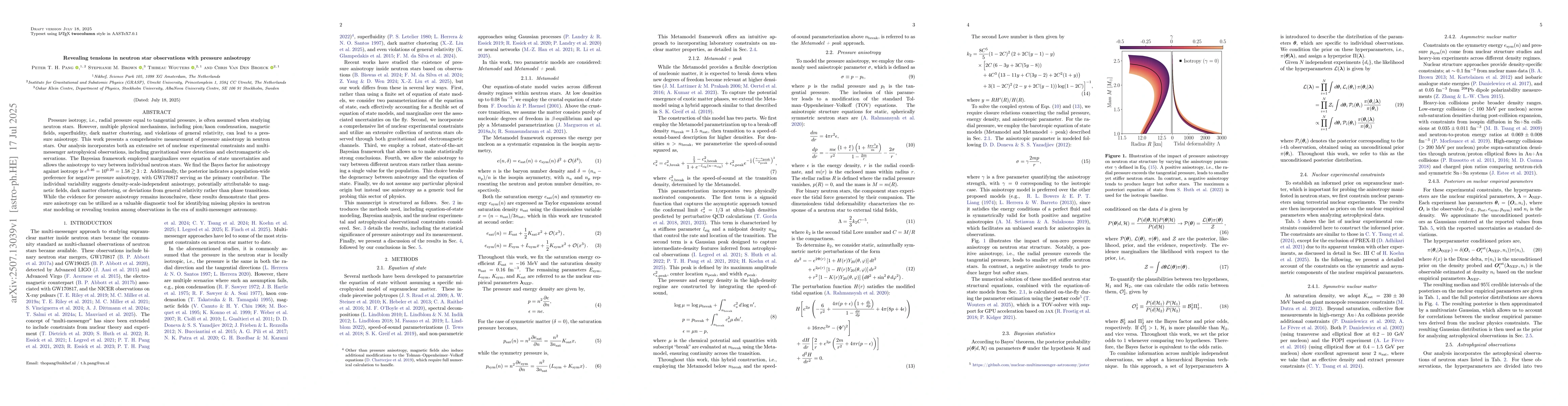 Pressure isotropy, i.e., radial pressure equal to tangential pressure, is often assumed when studying neutron stars. However, multiple physical mechanisms, including pion/kaon condensation, magnetic fields, superfluidity, dark matter clustering, and violations of general relativity, can lead to a pressure anisotropy. This work presents a comprehensive measurement of pressure anisotropy in neutron stars. Our analysis incorporates both an extensive set of nuclear experimental constraints and multi-messenger astrophysical observations, including gravitational wave detections and electromagnetic observations. The Bayesian framework employed marginalizes over equation of state uncertainties and allows the anisotropy to vary between individual neutron stars. We find the Bayes factor for anisotropy against isotropy is $e^{0.46}=10^{0.20}=1.58\gtrsim 3:2$. Additionally, the posterior indicates a population-wide preference for negative pressure anisotropy, with GW170817 serving as the primary contributor. The individual variability suggests density-scale-independent anisotropy, potentially attributable to magnetic fields, dark matter clustering, or deviations from general relativity rather than phase transitions. While the evidence for pressure anisotropy remains inconclusive, these results demonstrate that pressure anisotropy can be utilized as a valuable diagnostic tool for identifying missing physics in neutron star modeling or revealing tension among observations in the era of multi-messenger astronomy.