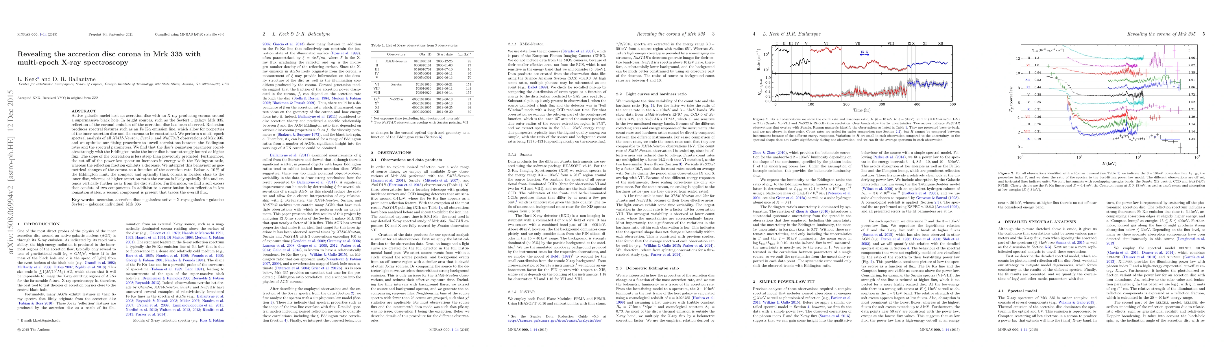 This study analyzes X-ray observations of galaxy Mrk 335 to understand how the region around its black hole changes with different energy outputs, revealing that the corona becomes more extended and less dense at higher accretion rates. The findings suggest that the properties of the X-ray emitting region are closely linked to how actively the black hole is feeding.