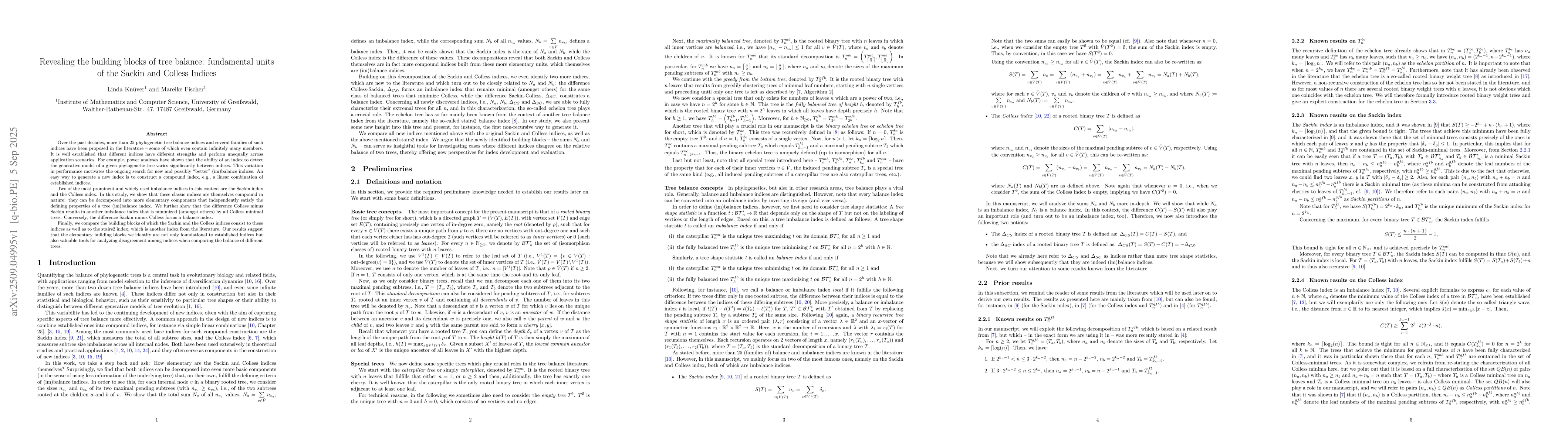 Over the past decades, more than 25 phylogenetic tree balance indices and several families of such indices have been proposed in the literature -- some of which even contain infinitely many members. It is well established that different indices have different strengths and perform unequally across application scenarios. For example, power analyses have shown that the ability of an index to detect the generative model of a given phylogenetic tree varies significantly between indices. This variation in performance motivates the ongoing search for new and possibly \enquote{better} (im)balance indices. An easy way to generate a new index is to construct a compound index, e.g., a linear combination of established indices. Two of the most prominent and widely used imbalance indices in this context are the Sackin index and the Colless index. In this study, we show that these classic indices are themselves compound in nature: they can be decomposed into more elementary components that independently satisfy the defining properties of a tree (im)balance index. We further show that the difference Colless minus Sackin results in another imbalance index that is minimized (amongst others) by all Colless minimal trees. Conversely, the difference Sackin minus Colless forms a balance index. Finally, we compare the building blocks of which the Sackin and the Colless indices consist to these indices as well as to the stairs2 index, which is another index from the literature. Our results suggest that the elementary building blocks we identify are not only foundational to established indices but also valuable tools for analyzing disagreement among indices when comparing the balance of different trees.
