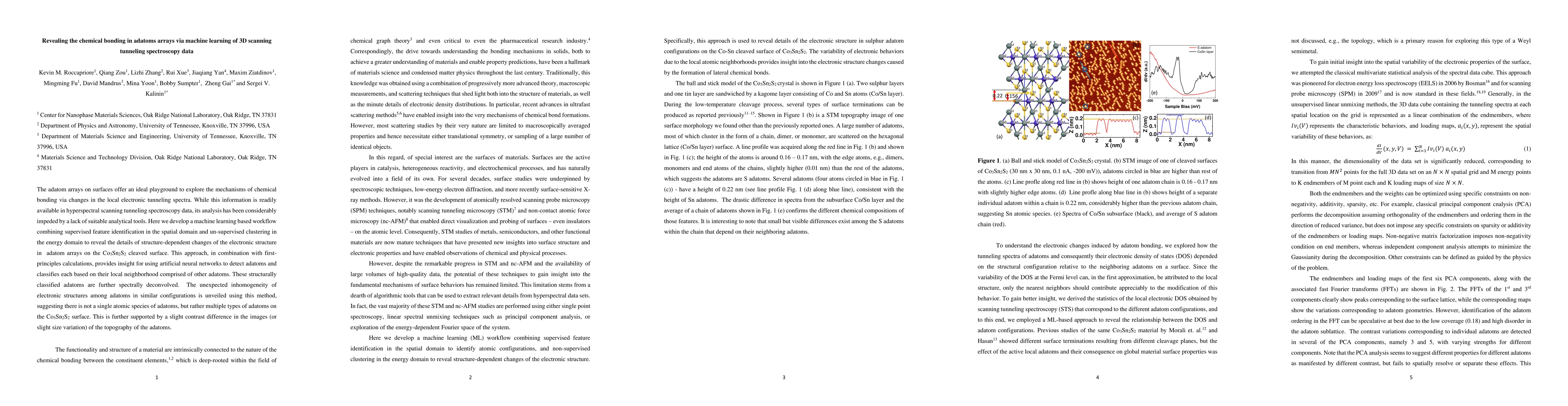 Researchers developed a machine learning approach to analyze scanning tunneling spectroscopy data on adatom arrays, revealing multiple types of adatoms with different electronic structures on the Co3Sn2S2 surface.