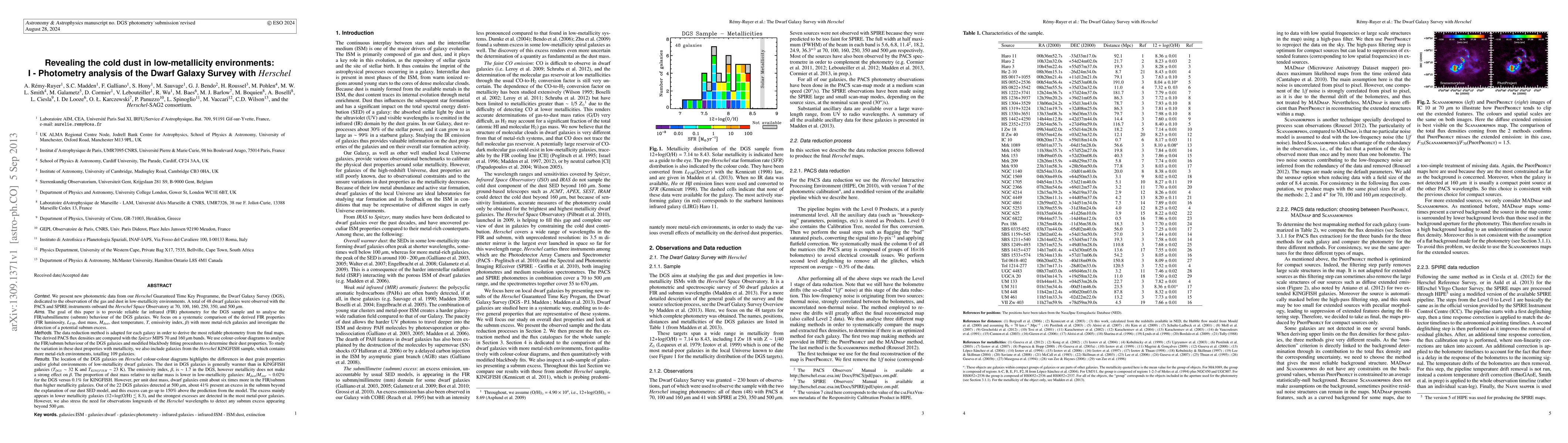We present new photometric data from our Herschel Key Programme, the Dwarf Galaxy Survey (DGS), dedicated to the observation of the gas and dust in 48 low-metallicity environments. They were observed with PACS and SPIRE onboard Herschel at 70,100,160,250,350, and 500 microns. We focus on a systematic comparison of the derived FIR properties (FIR luminosity, dust mass, dust temperature and emissivity index) with more metal-rich galaxies and investigate the detection of a potential submm excess. The data reduction method is adapted for each galaxy to derive the most reliable photometry from the final maps. PACS flux densities are compared with the MIPS 70 and 160 microns bands. We use colour-colour diagrams and modified blackbody fitting procedures to determine the dust properties of the DGS galaxies. We also include galaxies from the Herschel KINGFISH sample, containing more metal-rich environments, totalling 109 galaxies. The location of the DGS galaxies on Herschel colour-colour diagrams highlights the differences in global environments of low-metallicity galaxies. The dust in DGS galaxies is generally warmer than in KINGFISH galaxies (T_DGS~32 K, T_KINGFISH~23 K). The emissivity index, beta, is ~1.7 in the DGS, but metallicity does not make a strong effect on beta. The dust-to-stellar mass ratio is lower in low-metallicity galaxies: M_dust/M_star~0.02% for the DGS vs 0.1% for KINGFISH. Per unit dust mass, dwarf galaxies emit ~6 times more in the FIR than higher metallicity galaxies. Out of the 22 DGS galaxies detected at 500 micron, 41% present an excess in the submm not explained by our dust SED model. The excess mainly appears in lower metallicity galaxies (12+log(O/H) < 8.3), and the strongest excesses are detected in the most metal-poor galaxies. We stress the need for observations longwards of the Herschel wavelengths to detect any submm excess appearing beyond 500 micron.