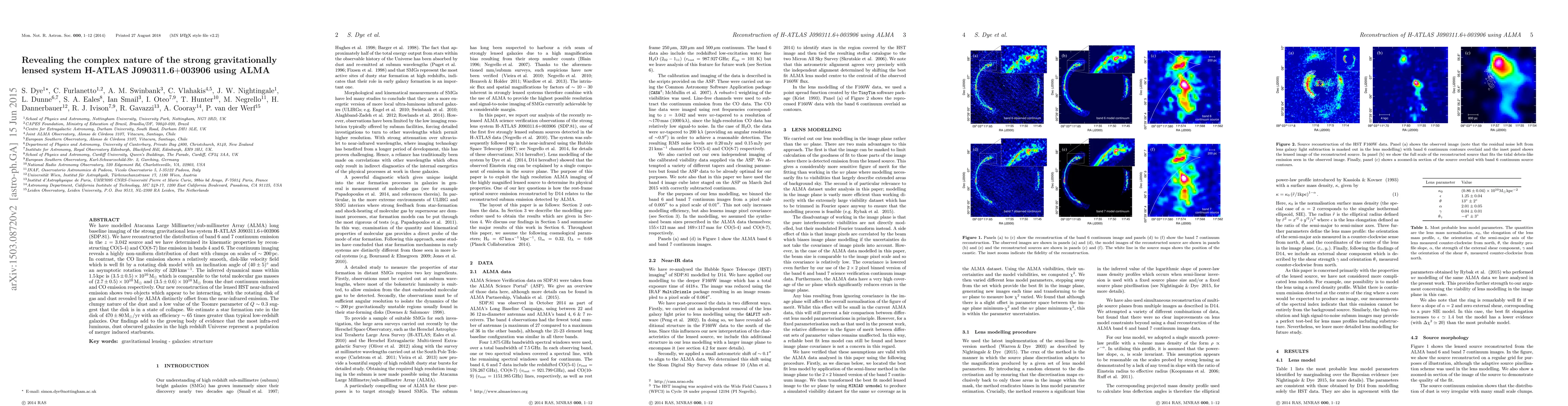 We have modelled Atacama Large Millimeter/sub-millimeter Array (ALMA) long baseline imaging of the strong gravitational lens system H-ATLAS J090311.6+003906 (SDP.81). We have reconstructed the distribution of band 6 and 7 continuum emission in the z=3.042 source and we have determined its kinematic properties by reconstructing CO(5-4) and CO(8-7) line emission in bands 4 and 6. The continuum imaging reveals a highly non-uniform distribution of dust with clumps on scales of 200 pc. In contrast, the CO line emission shows a relatively smooth, disk-like velocity field which is well fit by a rotating disk model with an inclination angle of 40+/-5 degrees and an asymptotic rotation velocity of 320 km/s. The inferred dynamical mass within 1.5kpc is (3.5+/-0.5)x10^{10} M_sol which is comparable to the total molecular gas masses of (2.7+/-0.5)x10^{10} M_sol and (3.5+/-0.6)x10^{10} M_sol from the dust continuum emission and CO emission respectively. Our new reconstruction of the lensed HST near-infrared emission shows two objects which appear to be interacting, with the rotating disk of gas and dust revealed by ALMA distinctly offset from the near-infrared emission. The clumpy nature of the dust and a low value of the Toomre parameter of Q=0.3 suggest that the disk is in a state of collapse. We estimate a star formation rate in the disk of 470+/-80 M_sol/yr with an efficiency 65 times greater than typical low-redshift galaxies. Our findings add to the growing body of evidence that the most infra-red luminous, dust obscured galaxies in the high redshift Universe represent a population of merger induced starbursts.