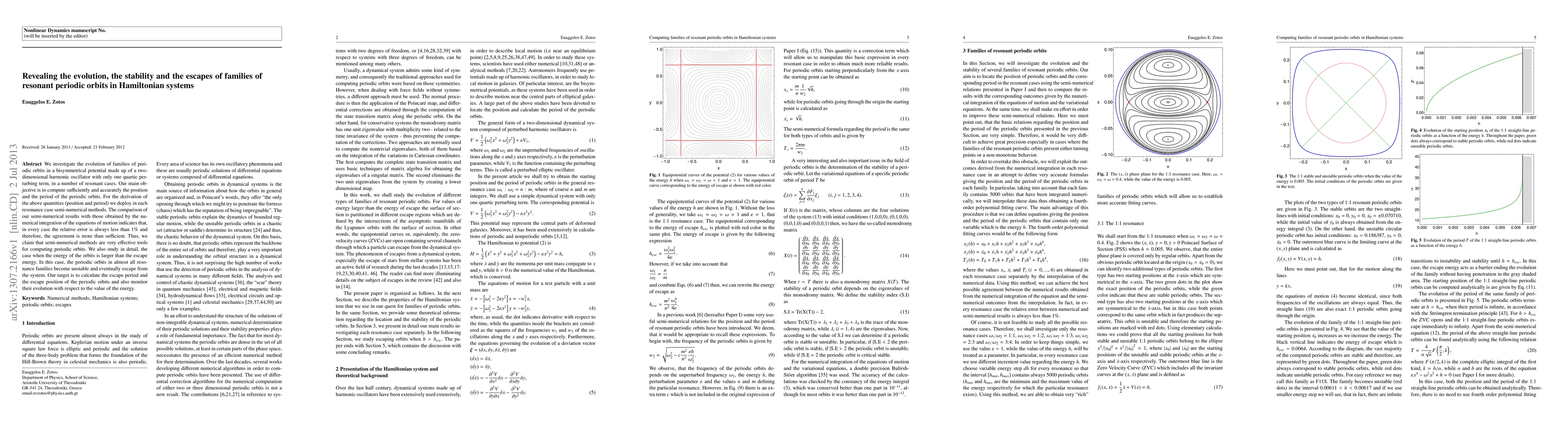 This paper explores the evolution and stability of resonant periodic orbits in a bisymmetrical potential, using semi-numerical methods to accurately compute their positions and periods. It also investigates the escape behavior of orbits when their energy exceeds the escape threshold, determining the escape period and position.