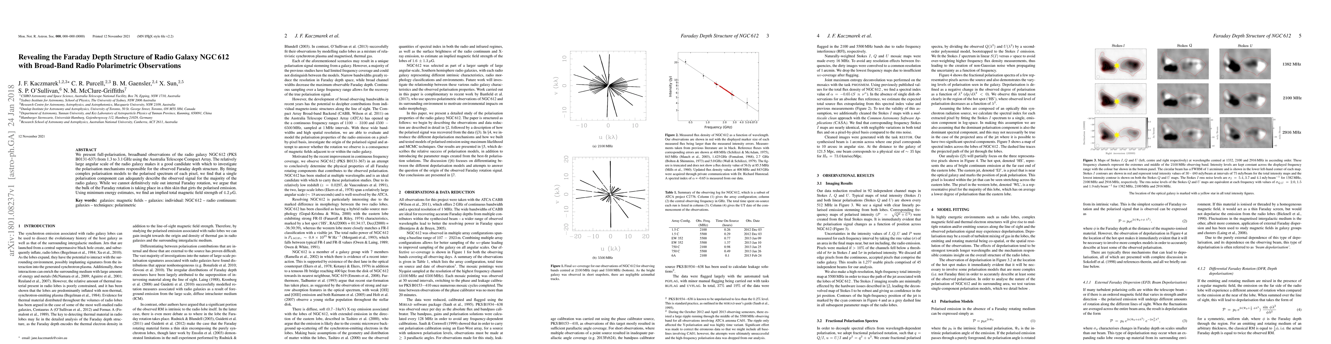 We present full-polarisation, broadband observations of the radio galaxy NGC 612 (PKS B0131-637) from 1.3 to 3.1 GHz using the Australia Telescope Compact Array. The relatively large angular scale of the radio galaxy makes it a good candidate with which to investigate the polarisation mechanisms responsible for the observed Faraday depth structure. By fitting complex polarisation models to the polarised spectrum of each pixel, we find that a single polarisation component can adequately describe the observed signal for the majority of the radio galaxy. While we cannot definitively rule out internal Faraday rotation, we argue that the bulk of the Faraday rotation is taking place in a thin skin that girts the polarised emission. Using minimum energy estimates, we find an implied total magnetic field strength of 4.2 microG.