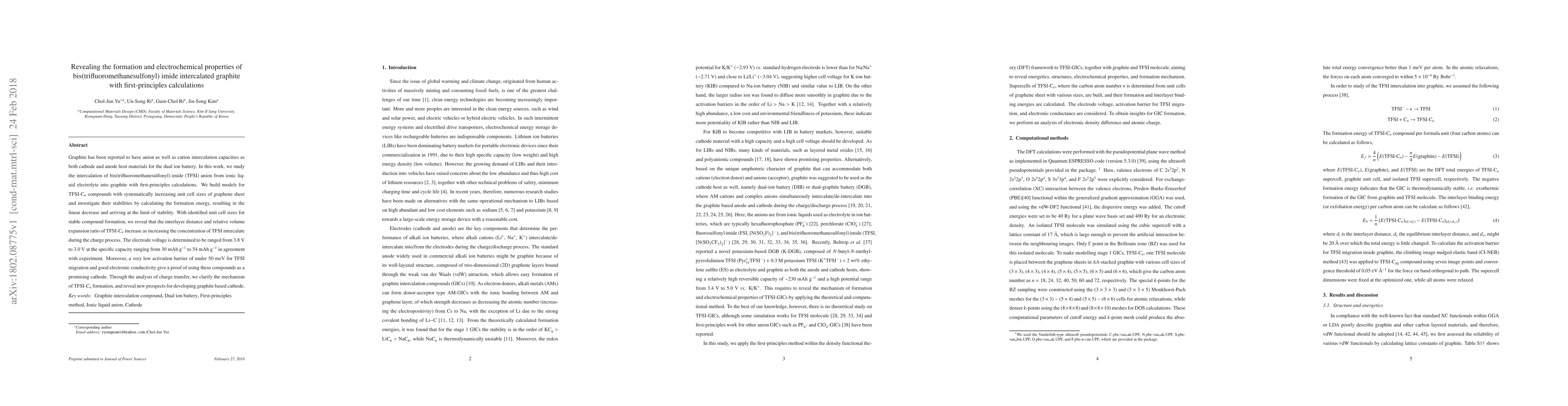 Graphite has been reported to have anion as well as cation intercalation capacities as both cathode and anode host materials for the dual ion battery. In this work, we study the intercalation of bis(trifluoromethanesulfonyl) imide (TFSI) anion from ionic liquid electrolyte into graphite with first-principles calculations. We build models for TFSI-C$_n$ compounds with systematically increasing unit cell sizes of graphene sheet and investigate their stabilities by calculating the formation energy, resulting in the linear decrease and arriving at the limit of stability. With identified unit cell sizes for stable compound formation, we reveal that the interlayer distance and relative volume expansion ratio of TFSI-C$_n$ increase as increasing the concentration of TFSI intercalate during the charge process. The electrode voltage is determined to be ranged from 3.8 V to 3.0 V at the specific capacity ranging from 30 mAh g$^{-1}$ to 54 mAh g$^{-1}$ in agreement with experiment. Moreover, a very low activation barrier of under 50 meV for TFSI migration and good electronic conductivity give a proof of using these compounds as a promising cathode. Through the analysis of charge transfer, we clarify the mechanism of TFSI-C$_n$ formation, and reveal new prospects for developing graphite based cathode.