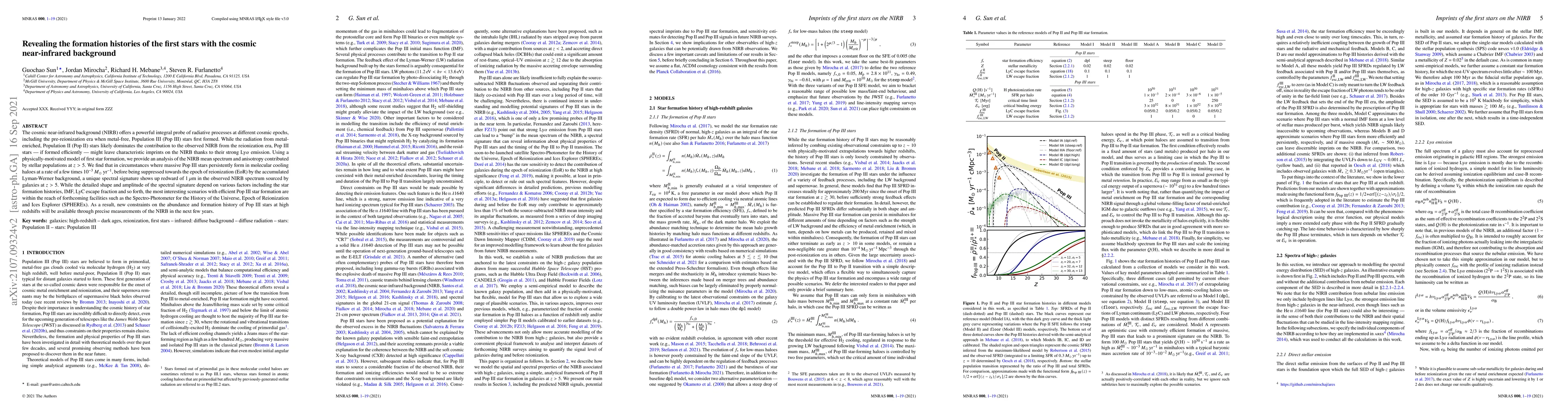 This paper investigates the cosmic near-infrared background (NIRB) as a probe to reveal the formation histories of the first stars, specifically Population III (Pop III) stars. The study finds that if Pop III stars formed efficiently before reionization, they could leave a unique spectral signature in the NIRB due to their strong Ly$\alpha$ emission, potentially detectable by upcoming observatories like SPHEREx.