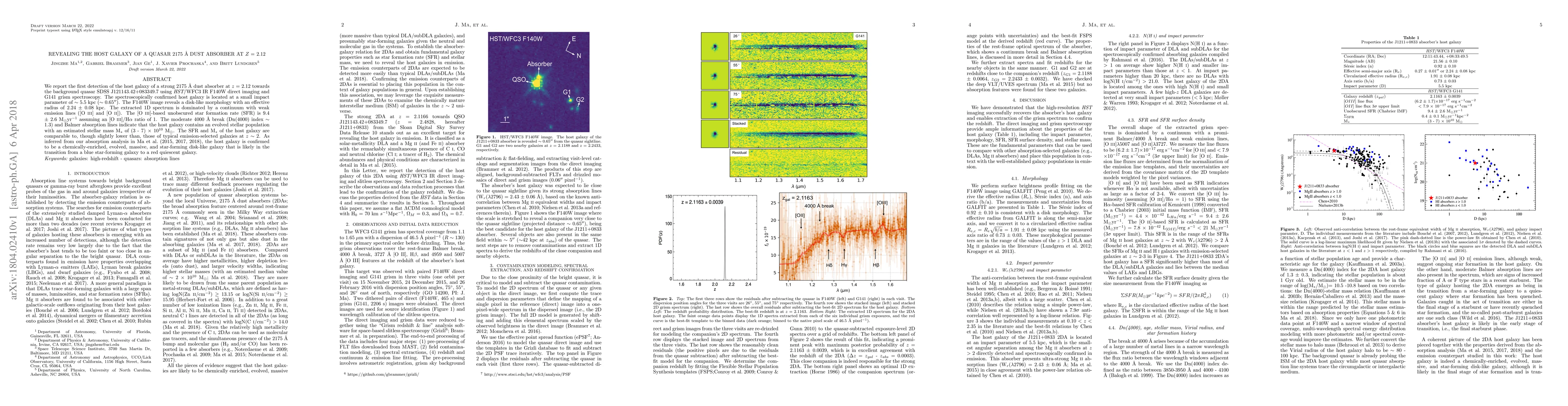 This paper reports the first detection of the host galaxy of a strong 2175 Å dust absorber at z=2.12 using HST imaging and spectroscopy, revealing a disk-like galaxy with a moderate star formation rate and evolved stellar population. The galaxy is transitioning from a star-forming to a quiescent state.