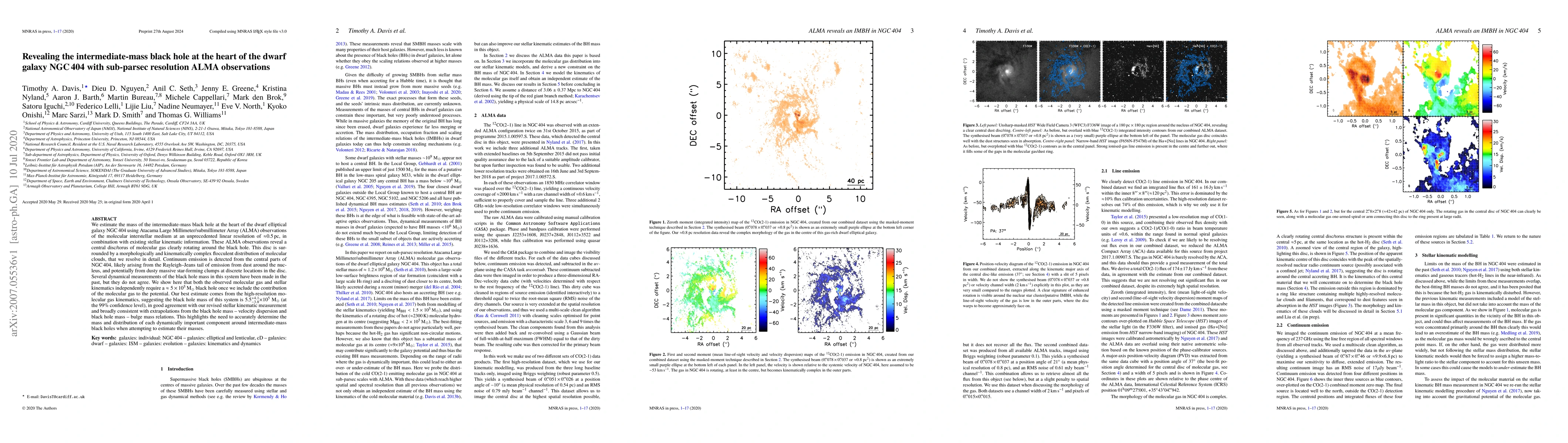 The research utilized high-resolution Atacama Large Millimeter/submillimeter Array (ALMA) observations to study the molecular interstellar medium of the dwarf elliptical galaxy NGC 404, combining this with existing stellar kinematic data to estimate the mass of an intermediate-mass black hole (IMBH) at the galaxy's center.