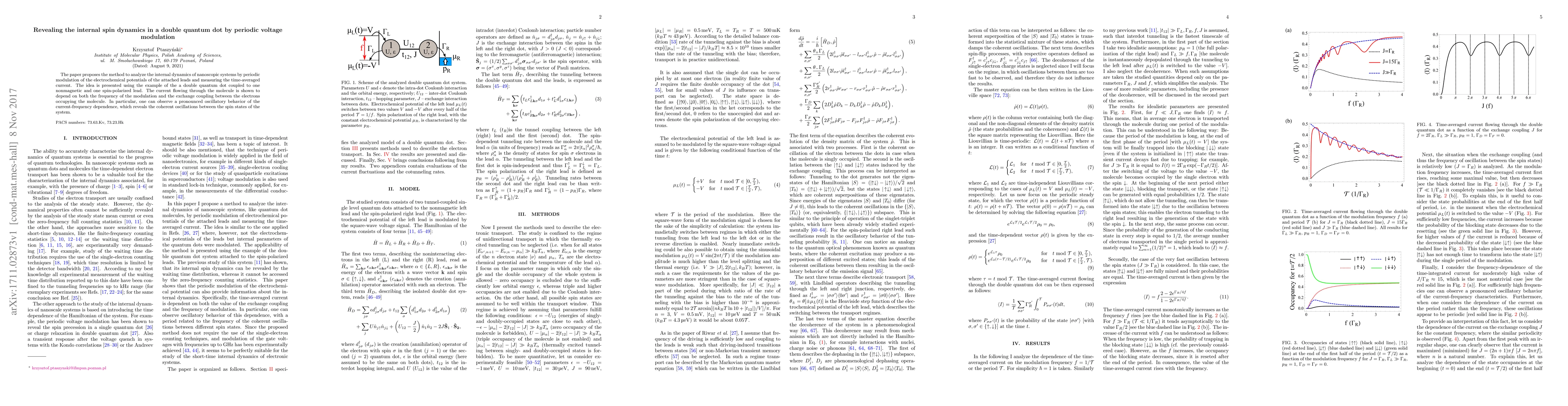 The research introduces a method to study internal spin dynamics in double quantum dots using periodic voltage modulation and analyzing time-averaged current. It demonstrates that current oscillations reveal coherent spin state oscillations, dependent on modulation frequency and exchange coupling.