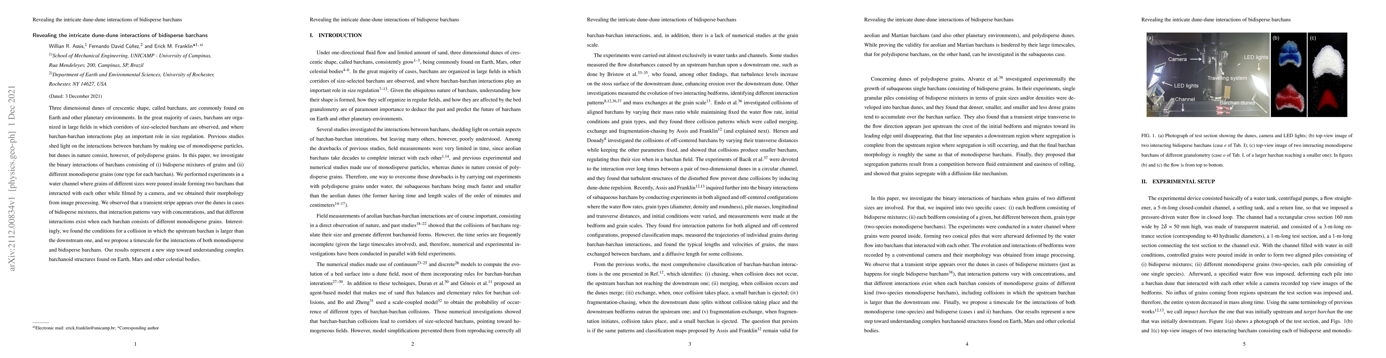 Researchers studied the interactions between barchans in bidisperse mixtures of grains and with different monodisperse grains, finding transient stripes, varying interaction patterns, and collision conditions for larger upstream barchans.