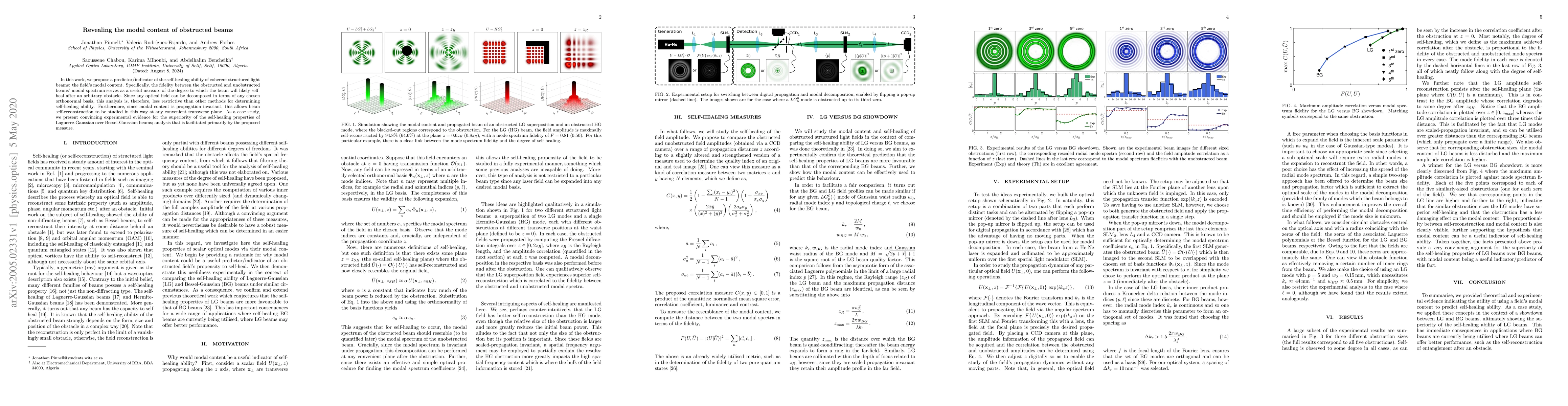 In this work, we propose a predictor/indicator of the self-healing ability of coherent structured light beams: the field's modal content. Specifically, the fidelity between the obstructed and unobstructed beams' modal spectrum serves as a useful measure of the degree to which the beam will likely self-heal after an arbitrary obstacle. Since any optical field can be decomposed in terms of any chosen orthonormal basis, this analysis is, therefore, less restrictive than other methods for determining self-healing ability. Furthermore, since modal content is propagation invariant, this allows beam self-reconstruction to be studied in this way at any convenient transverse plane. As a case study, we present convincing experimental evidence for the superiority of the self-healing properties of Laguerre-Gaussian over Bessel-Gaussian beams; analysis that is facilitated primarily by the proposed measure.