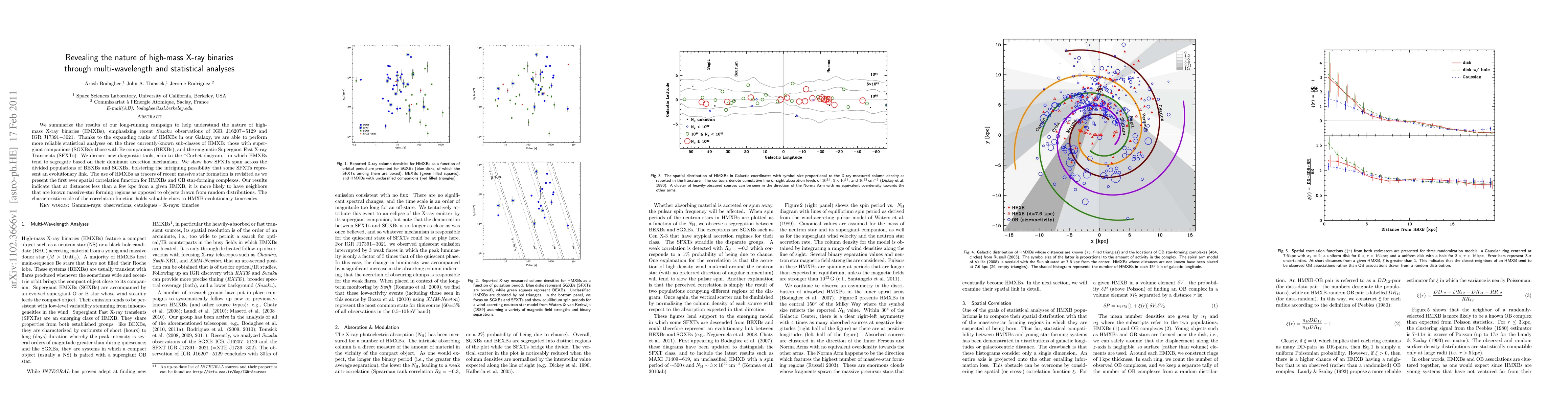 We summarize the results of our long-running campaign to help understand the nature of high-mass X-ray binaries (HMXBs), emphasizing recent Suzaku observations of IGR J16207-5129 and IGR J17391-3021. Thanks to the expanding ranks of HMXBs in our Galaxy, we are able to perform more reliable statistical analyses on the three currently-known sub-classes of HMXB: those with supergiant companions (SGXBs); those with Be companions (BEXBs); and the enigmatic Supergiant Fast X-ray Transients (SFXTs). We discuss new diagnostic tools, akin to the "Corbet diagram," in which HMXBs tend to segregate based on their dominant accretion mechanism. We show how SFXTs span across the divided populations of BEXBs and SGXBs, bolstering the intriguing possibility that some SFXTs represent an evolutionary link. The use of HMXBs as tracers of recent massive star formation is revisited as we present the first ever spatial correlation function for HMXBs and OB star-forming complexes. Our results indicate that at distances less than a few kpc from a given HMXB, it is more likely to have neighbors that are known massive-star forming regions as opposed to objects drawn from random distributions. The characteristic scale of the correlation function holds valuable clues to HMXB evolutionary timescales.
