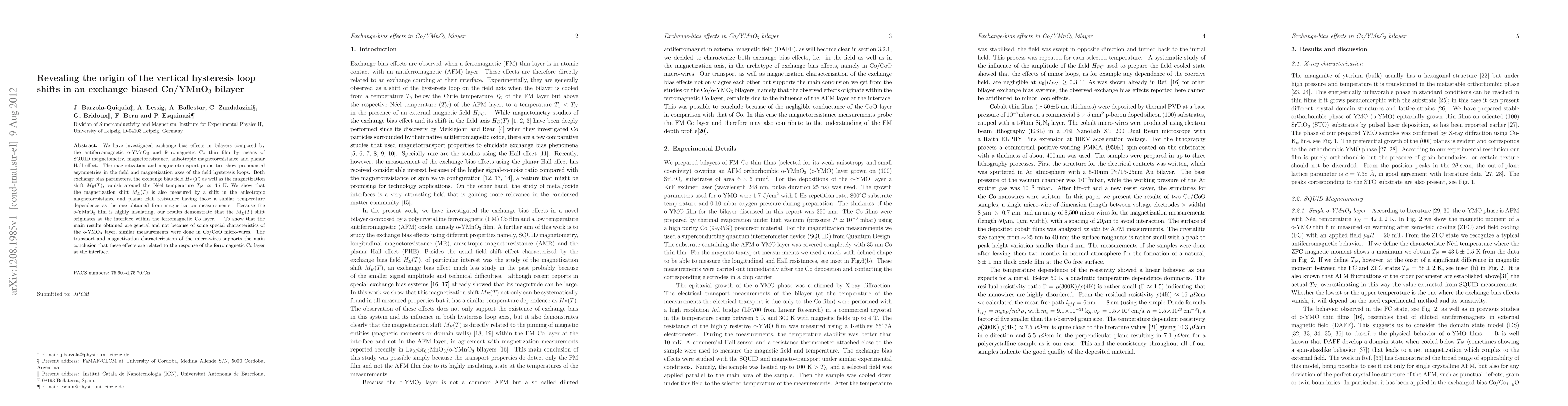 We have investigated exchange bias effects in bilayers composed by the antiferromagnetic o-YMnO$_3$ and ferromagnetic Co thin film by means of SQUID magnetometry, magnetoresistance, anisotropic magnetoresistance and planar Hall effect. The magnetization and magnetotransport properties show pronounced asymmetries in the field and magnetization axes of the field hysteresis loops. Both exchange bias parameters, the exchange bias field $H_{E}(T)$ as well as the magnetization shift $M_E(T)$, vanish around the N\'eel temperature $T_N \simeq 45$ K. We show that the magnetization shift $M_E(T)$ is also measured by a shift in the anisotropic magnetoresistance and planar Hall resistance having those a similar temperature dependence as the one obtained from magnetization measurements. Because the o-YMnO$_3$ film is highly insulating, our results demonstrate that the $M_E(T)$ shift originates at the interface within the ferromagnetic Co layer. To show that the main results obtained are general and not because of some special characteristics of the o-YMO$_3$ layer, similar measurements were done in Co/CoO micro-wires. The transport and magnetization characterization of the micro-wires supports the main conclusion that these effects are related to the response of the ferromagnetic Co layer at the interface.