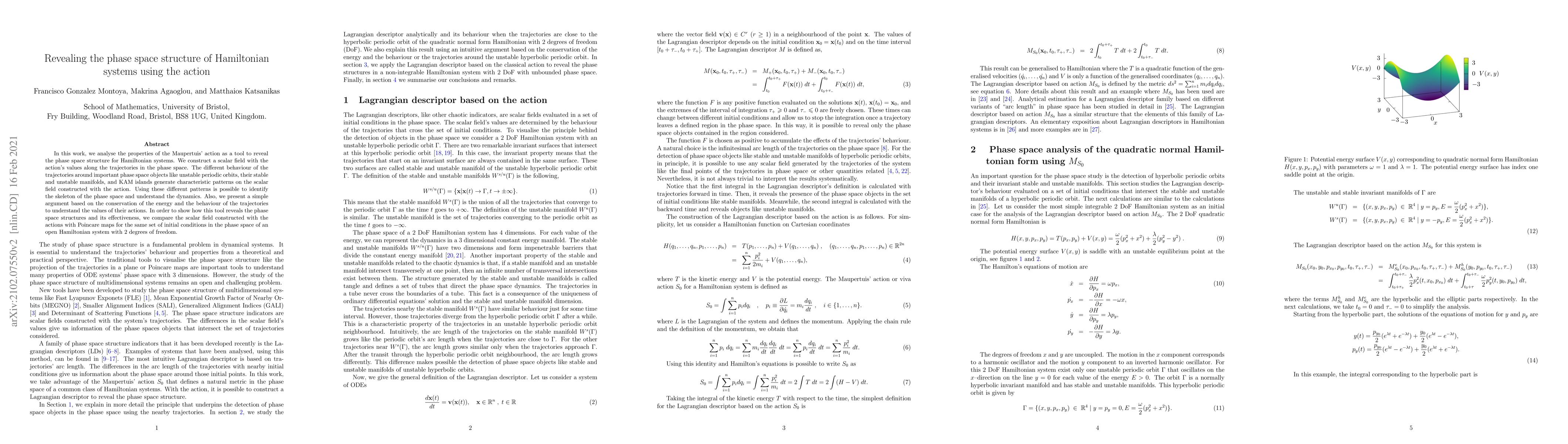 This research introduces a method using Maupertuis' action to unveil the phase space structure of Hamiltonian systems. By creating a scalar field from action values along trajectories, distinct patterns around key objects like unstable periodic orbits and KAM islands are identified, allowing for phase space visualization and dynamic understanding. The effectiveness of this approach is demonstrated by comparing it with Poincare maps in a 2-degree-of-freedom open Hamiltonian system.