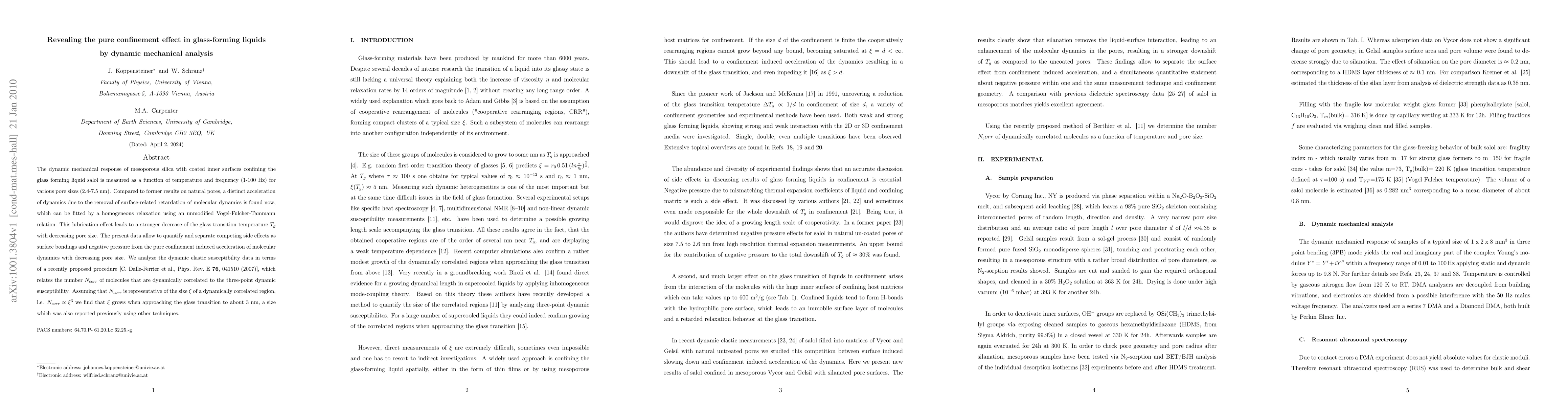 Researchers study the effect of confinement on glass-forming liquids using dynamic mechanical analysis, finding that a core relaxation process within pores is responsible for shifting the glass transition temperature to lower temperatures.