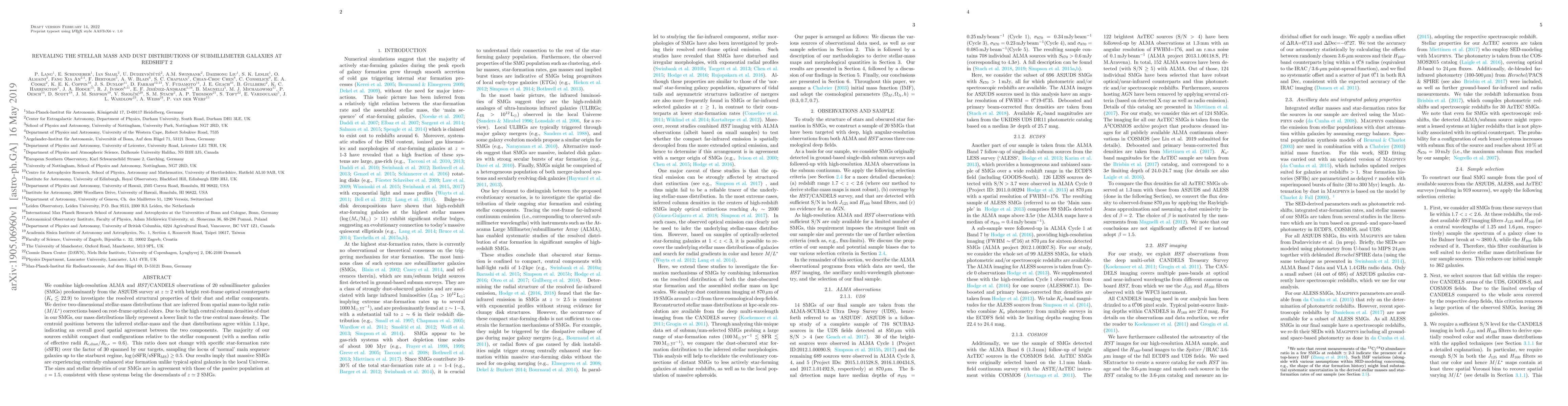 This study combines ALMA and HST/CANDELS data to analyze the dust and stellar mass distributions in 20 submillimeter galaxies at z~2. The findings reveal a close spatial alignment between stellar and dust components, with dust configurations being more compact than stars, indicating enhanced central star formation in these galaxies.